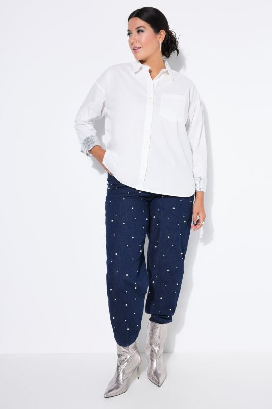 Sequined Snap Close Denim Blouse