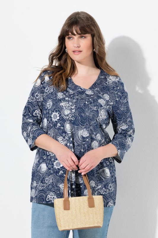 Geometric Striped 3/4 Sleeve Kaftan Dress