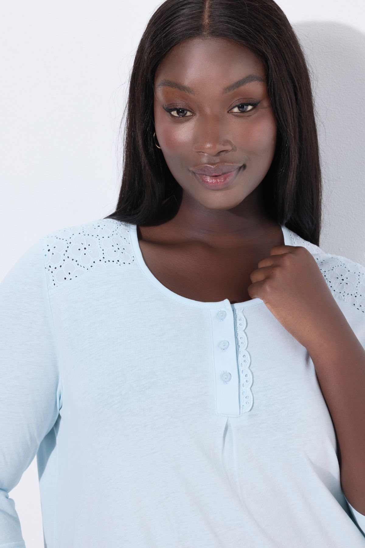 Broderie Anglaise Detail 3/4 Sleeve Nightgown