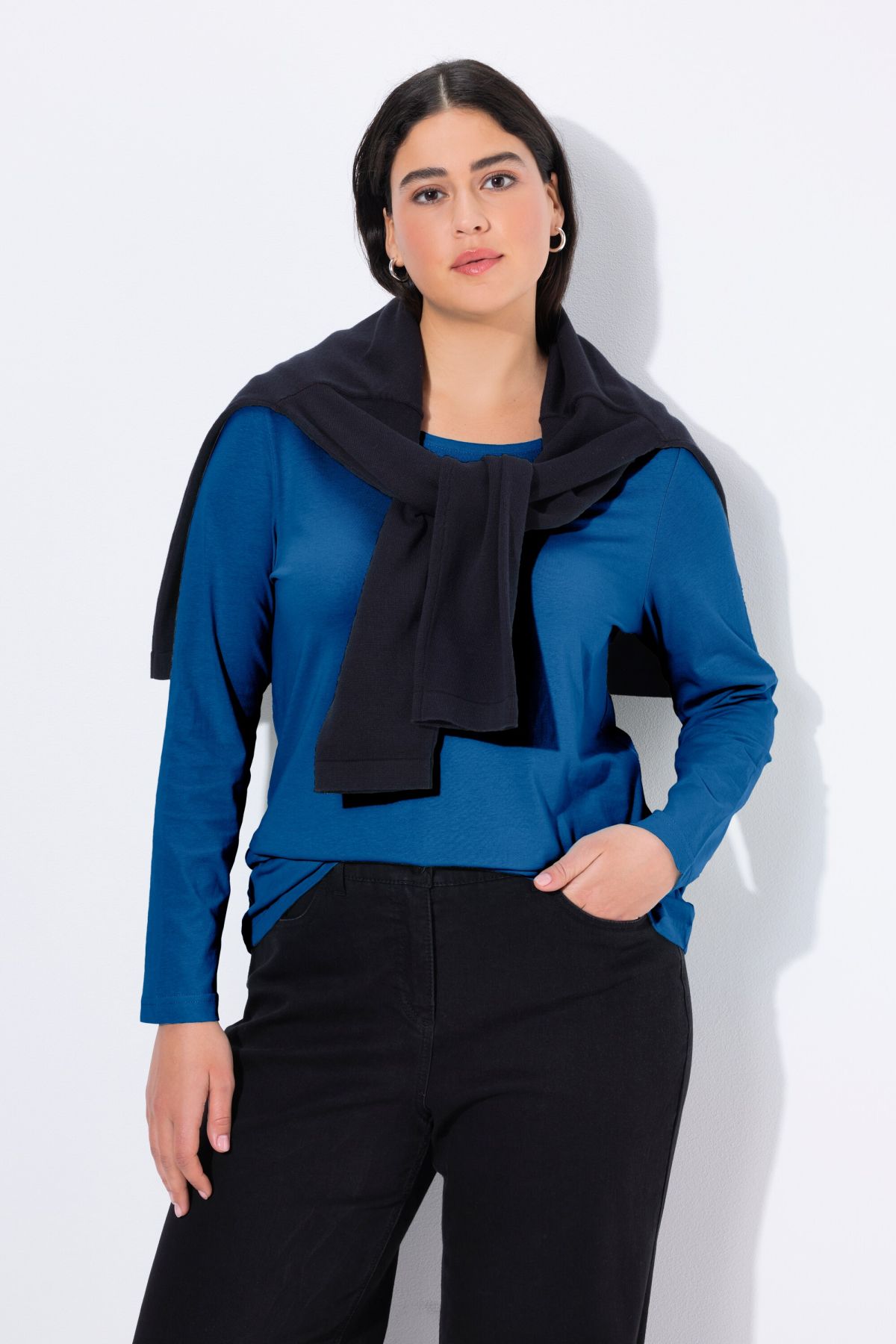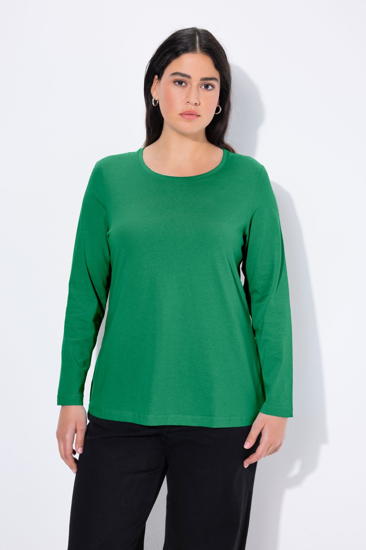 Basic tee with long sleeves and a round neck in a figure hugging fit. Ideal lightweight cotton layering piece. It can be worn with just about anything - a basic must have for your wardrobe. Slim fit.