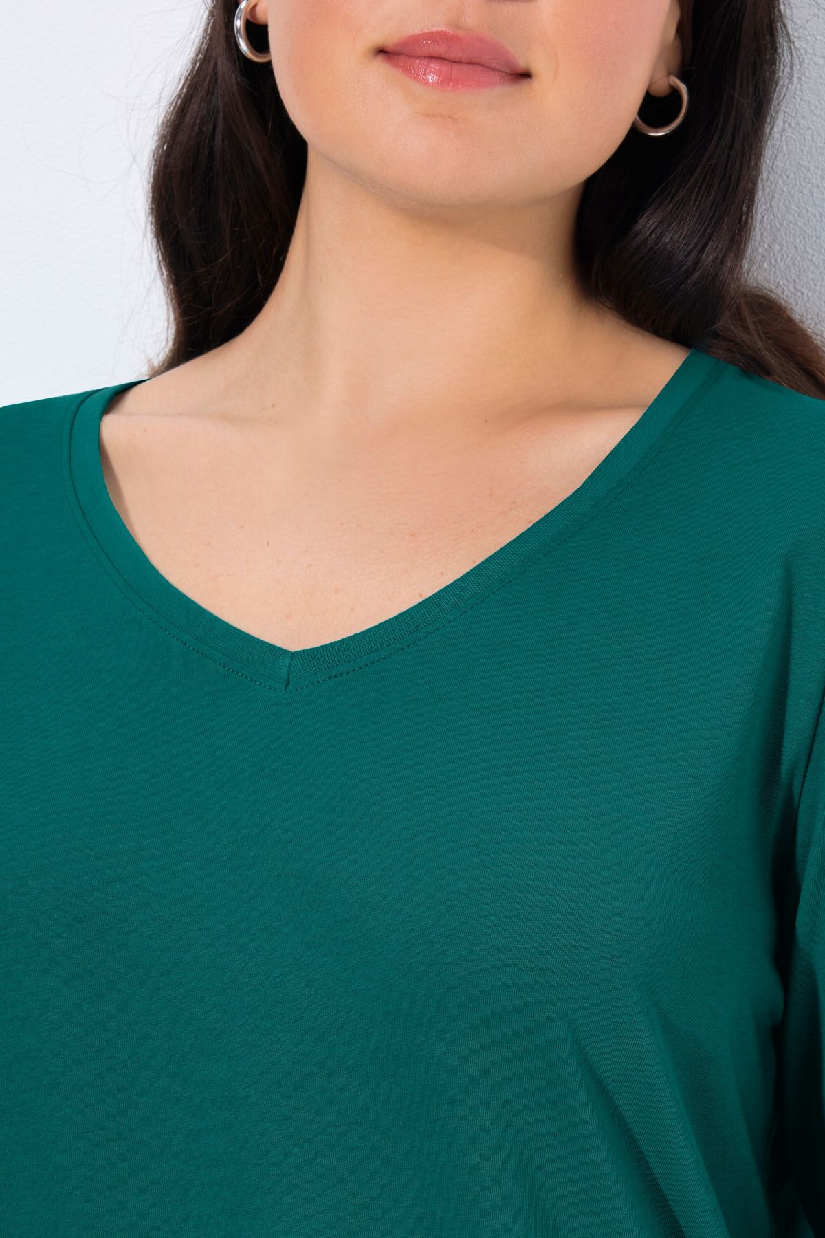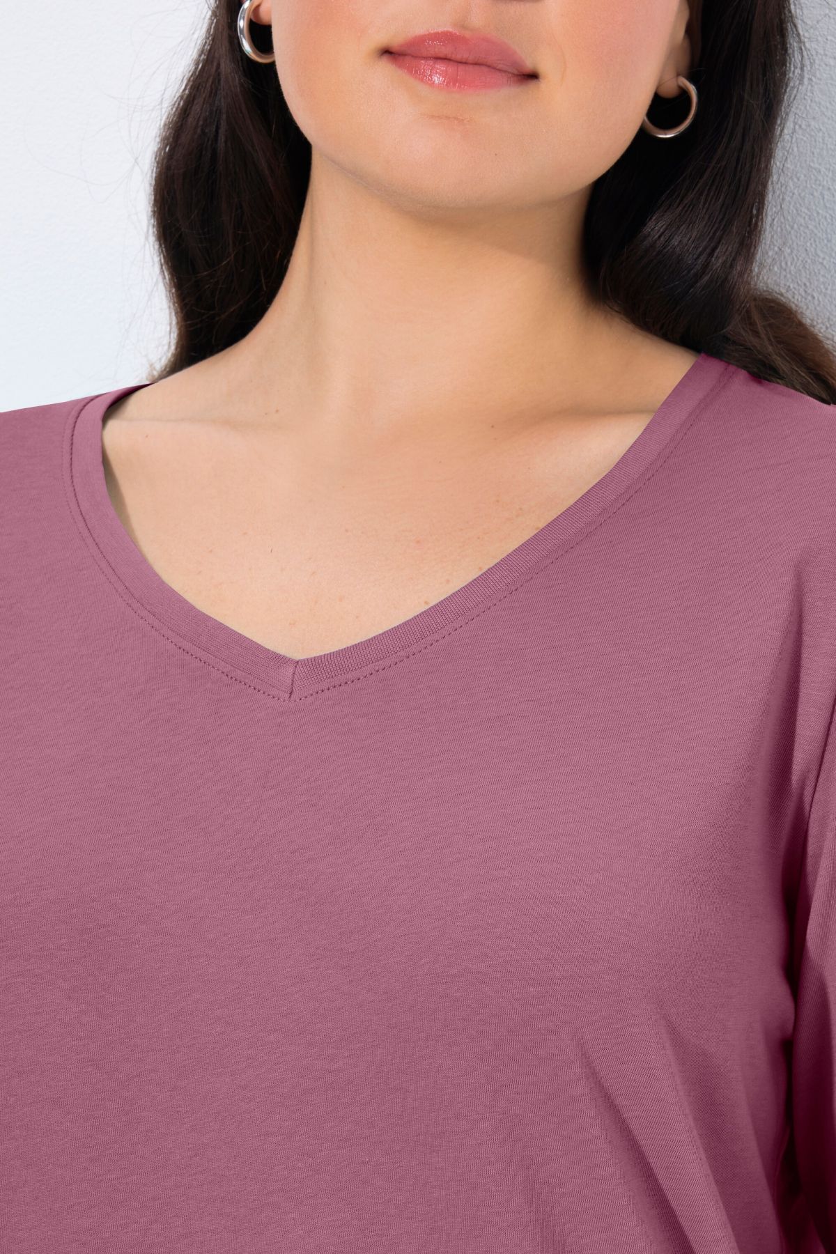 V-Neck Long Sleeves Slim Fit Cotton Knit Tee