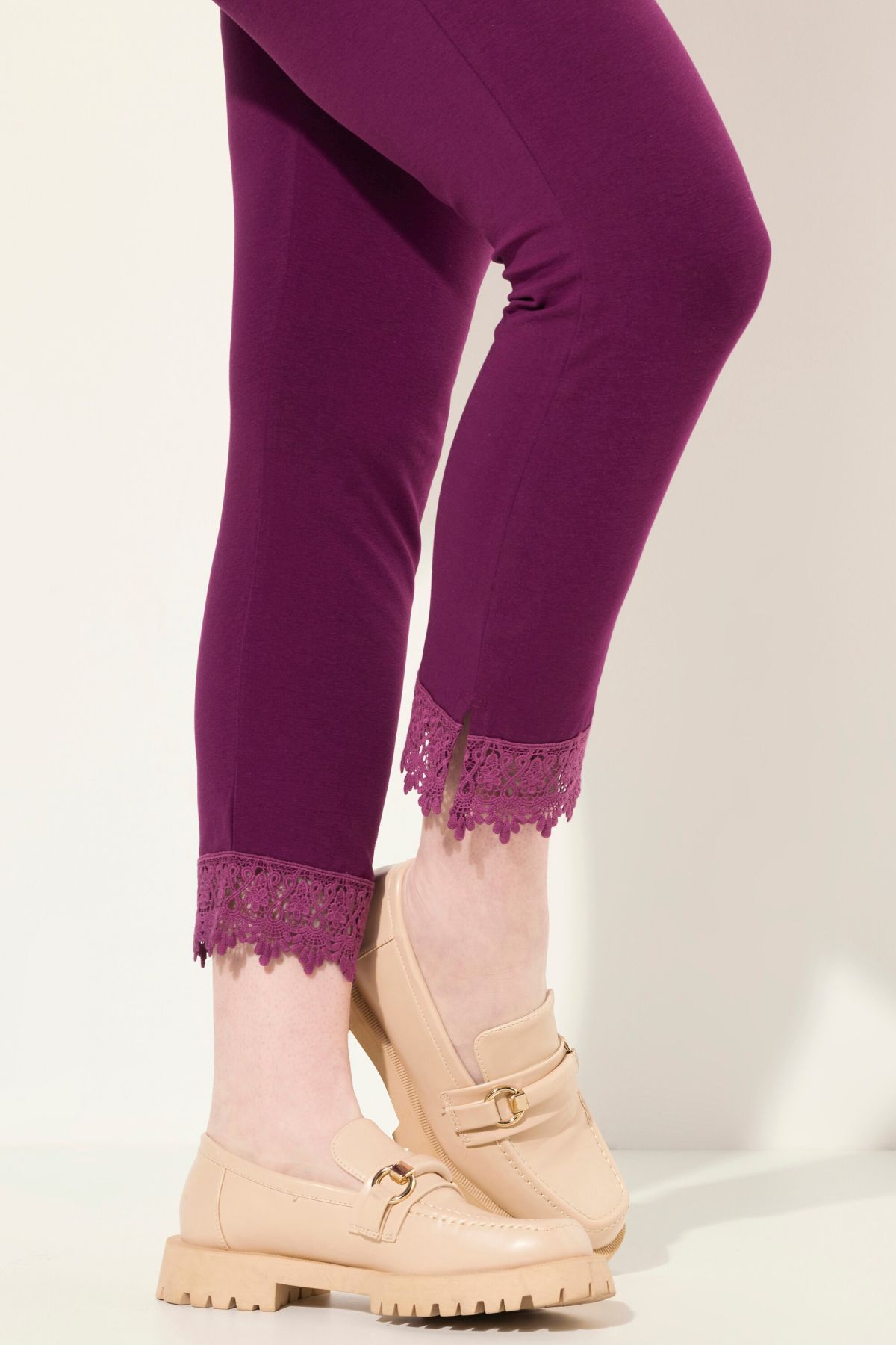 Eco Cotton Lace Trim Leggings - reimagine every outfit with a pair of comfortable and pretty lace trim stretch leggings. Elastic waist.