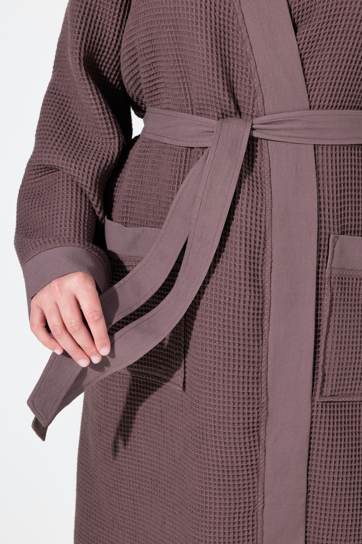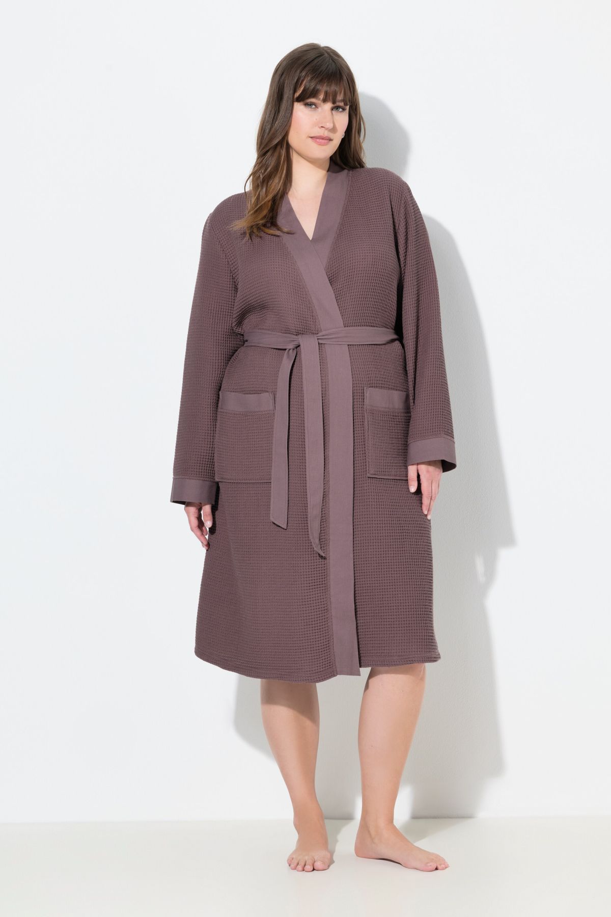 Waffle Pique Wrap Long Sleeve Cotton Bathrobe