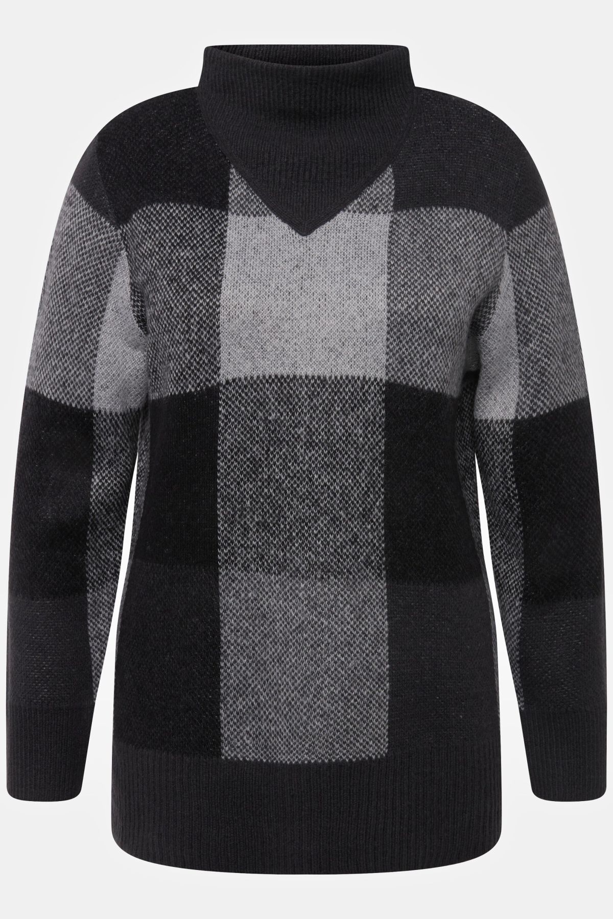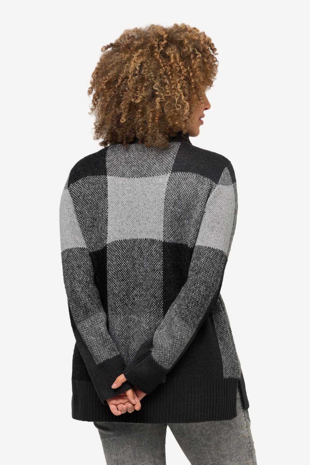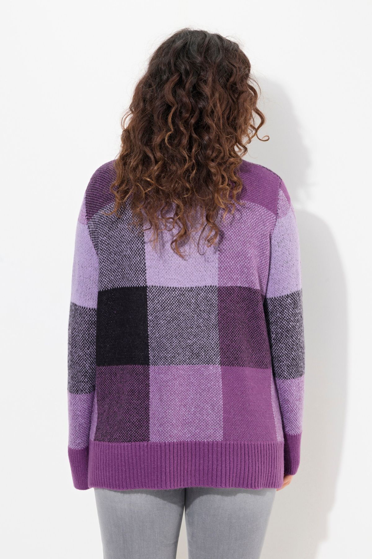 Grand Check Sweater# soft stretch comfort and perfect polish combine in this casually sophisticated style with a V-shaped solid ribbed stand-up collar inset. Solid ribbed cuffs on the long sleeves and bottom hem.