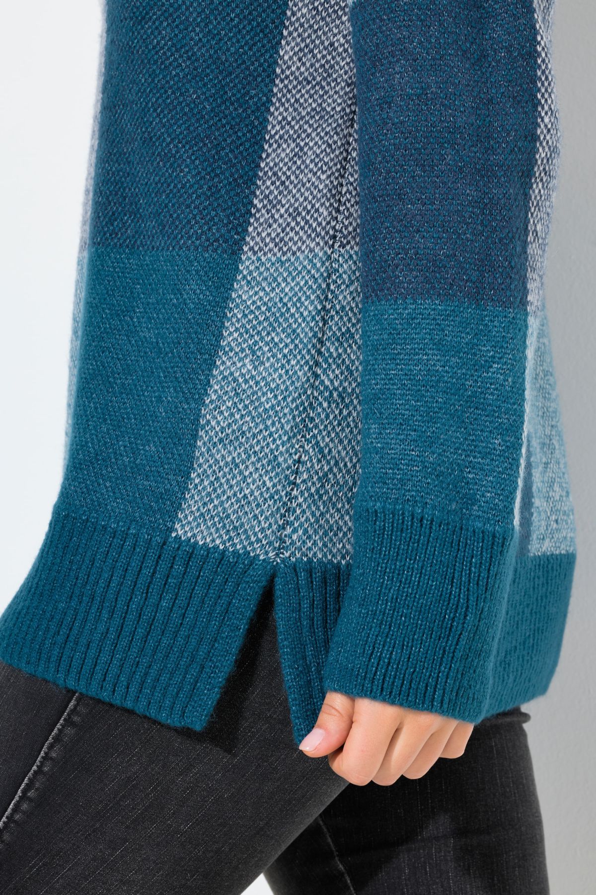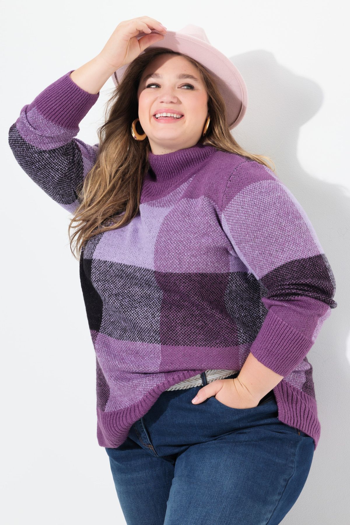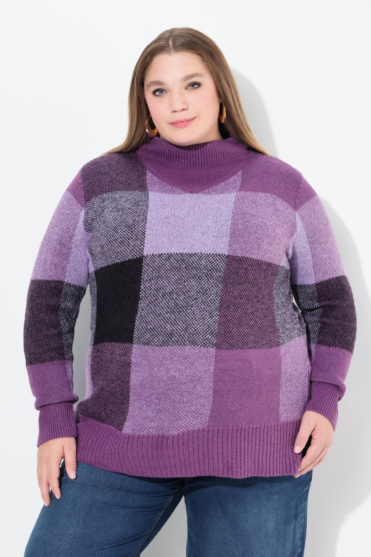 Grand Check Sweater# soft stretch comfort and perfect polish combine in this casually sophisticated style with a V-shaped solid ribbed stand-up collar inset. Solid ribbed cuffs on the long sleeves and bottom hem.