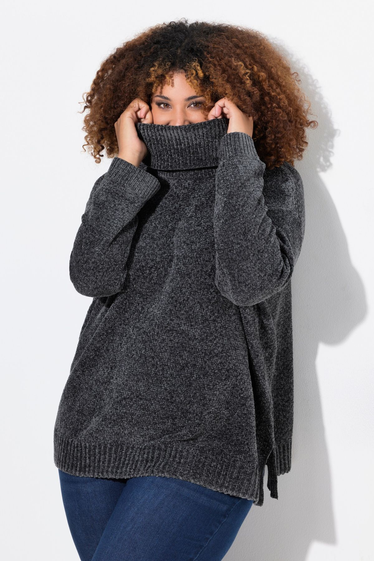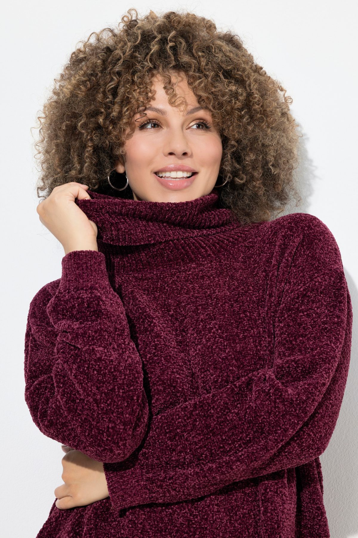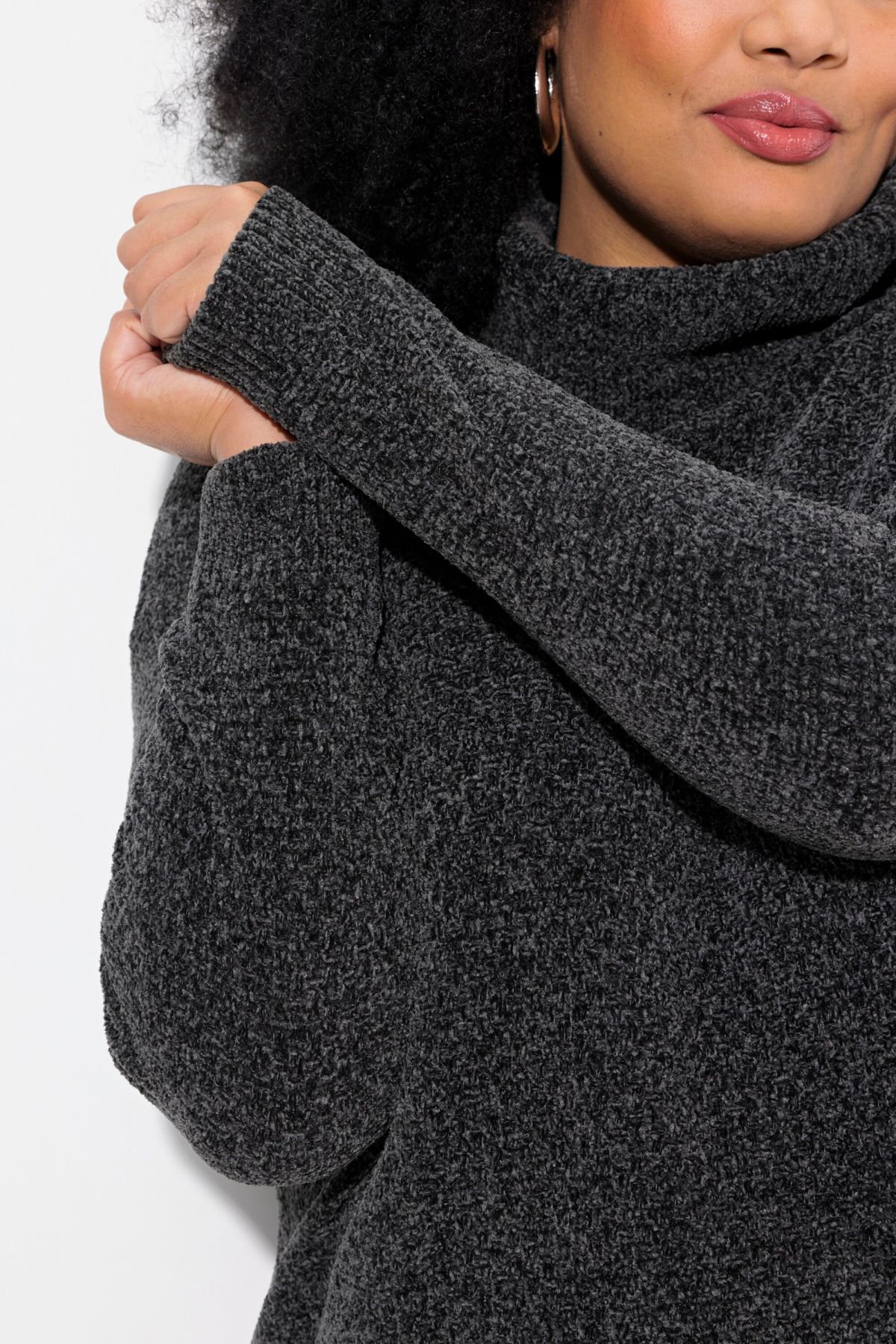 Soft Textured Chenille Sweater# there's nothing softer than chenille for being warm and comfy. Ribbed knit relaxed stand-up collar, long sleeve cuffs, and bottom hem. Oversized fit.
