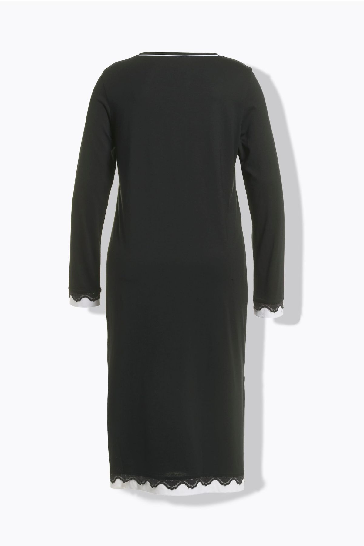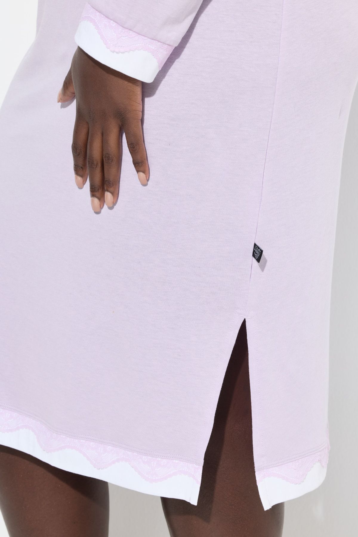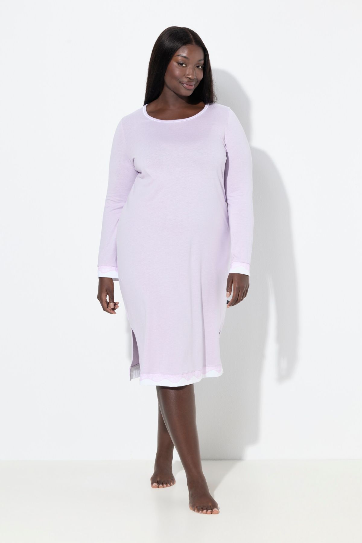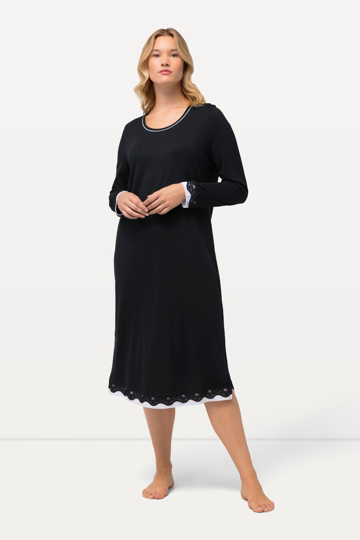 Lace Hem Super Soft Knit Nightgown# update your sleepwear with this pretty design in super soft modal cotton blend. Contrast piped round neck, and contrast hems with lace accents on the long sleeves and bottom.