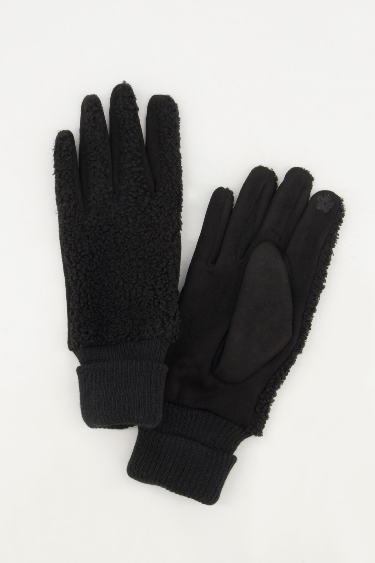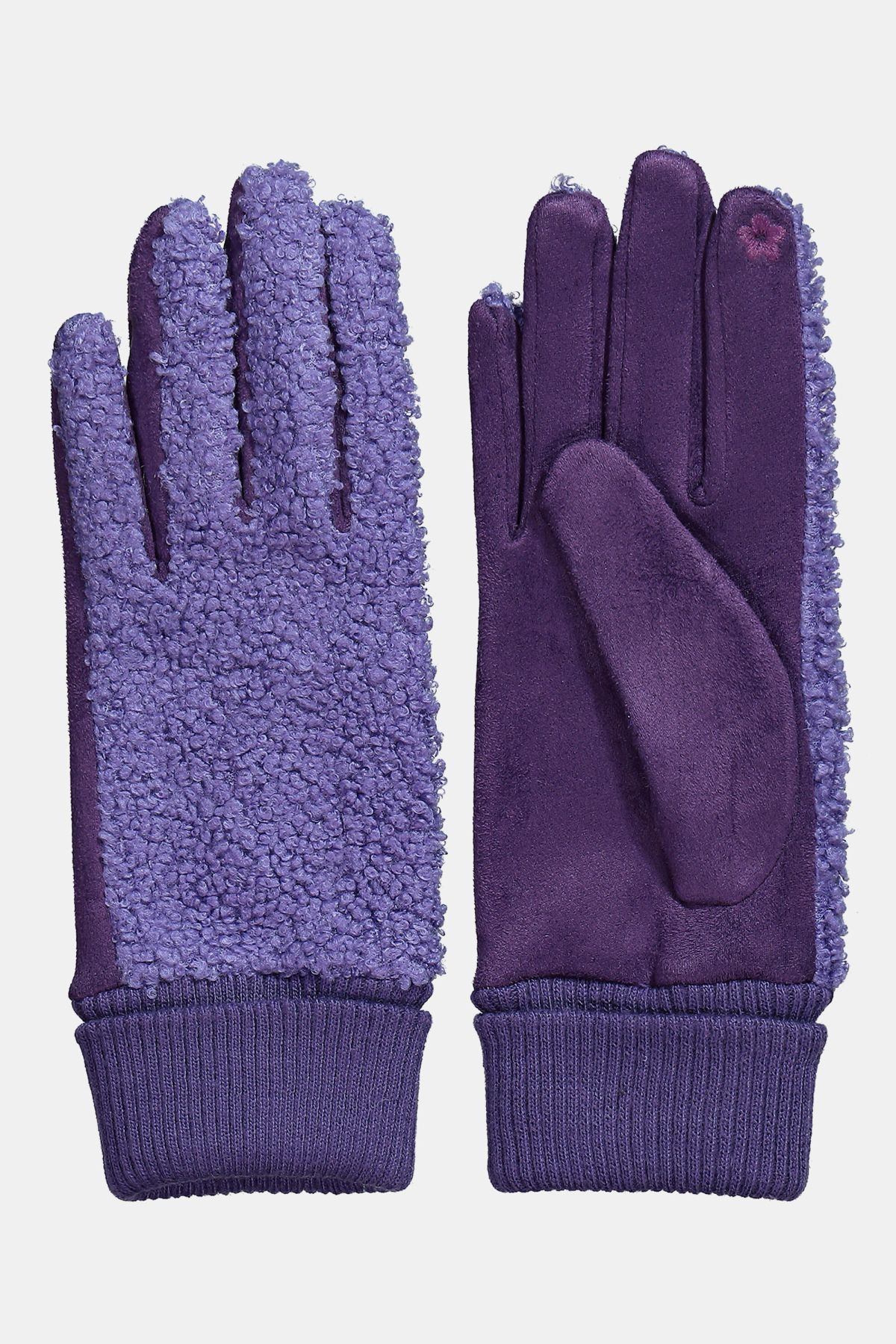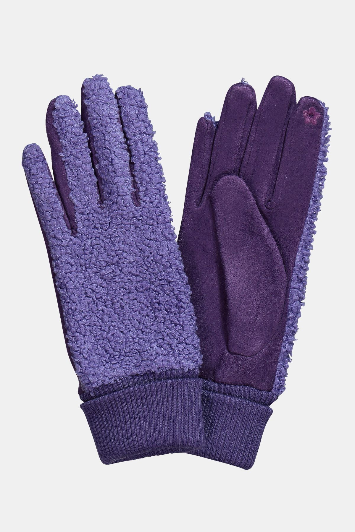 Gloves, cuddly soft teddy fleece, with fold-over cuff. Smooth inside for comfortable wear.