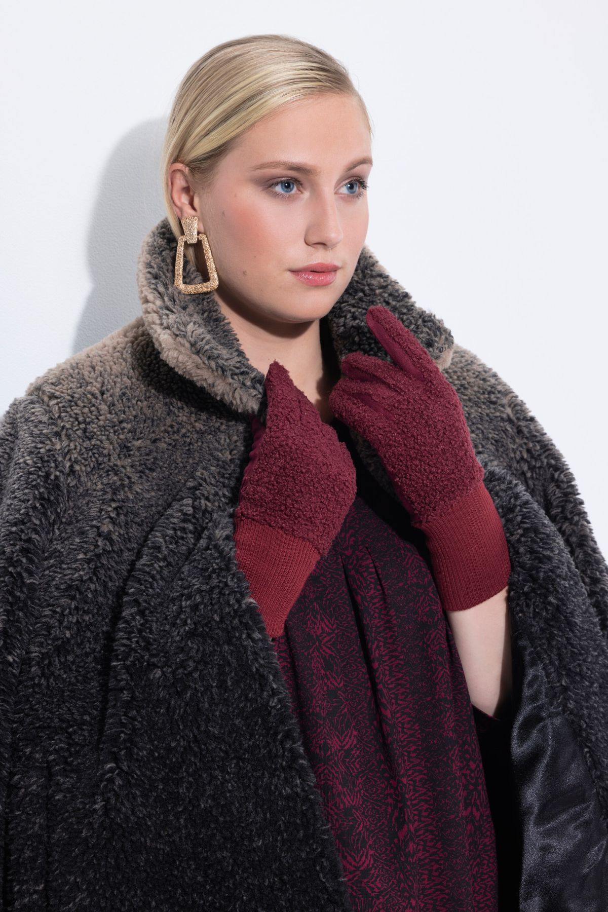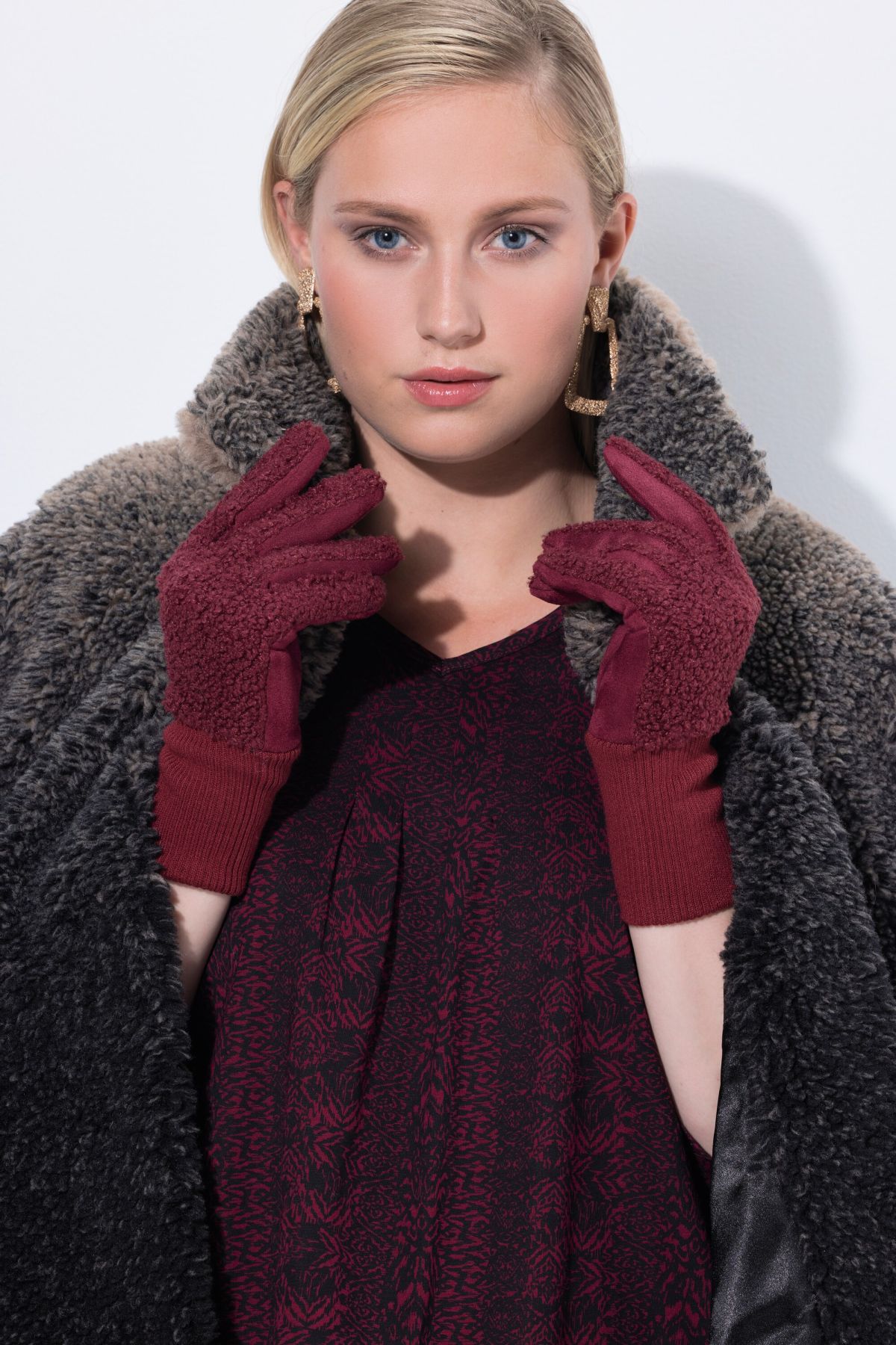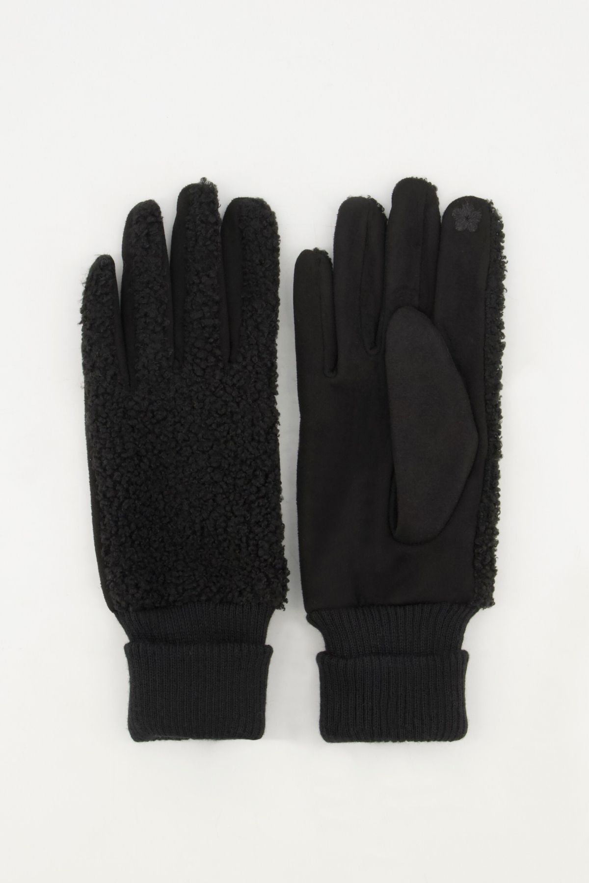 Gloves, cuddly soft teddy fleece, with fold-over cuff. Smooth inside for comfortable wear.
