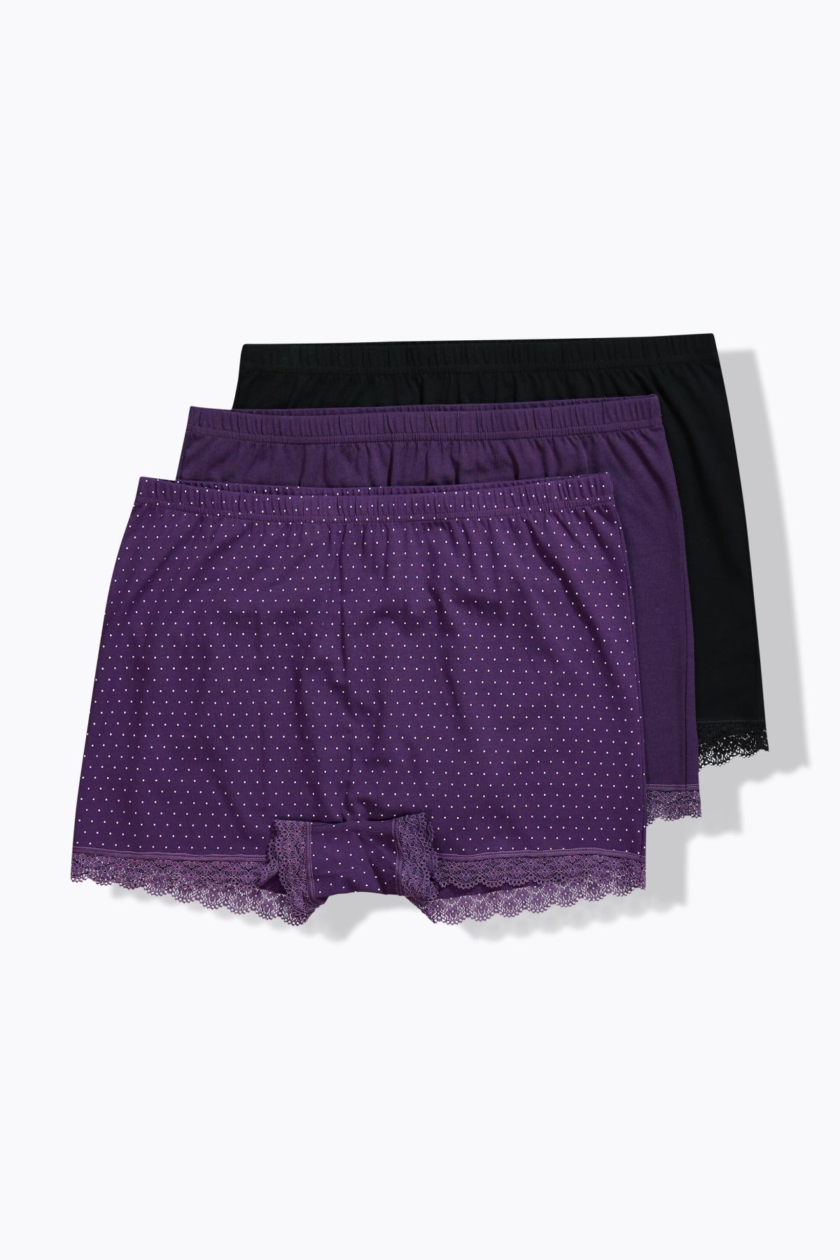 3 Pack Boyshorts - This maximum coverage design features lace trim at the leg holes for delicate feminine flair.