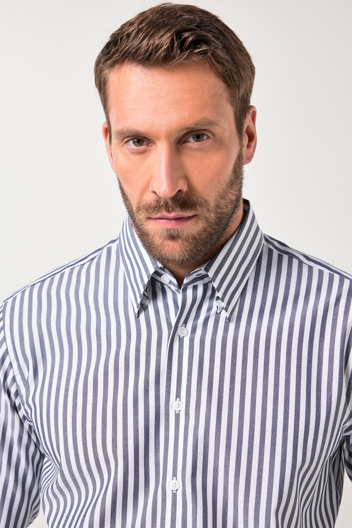 Striped shirt, business, long sleeve, concealed button-down collar, easy care, modern fit, up to 8 XL
