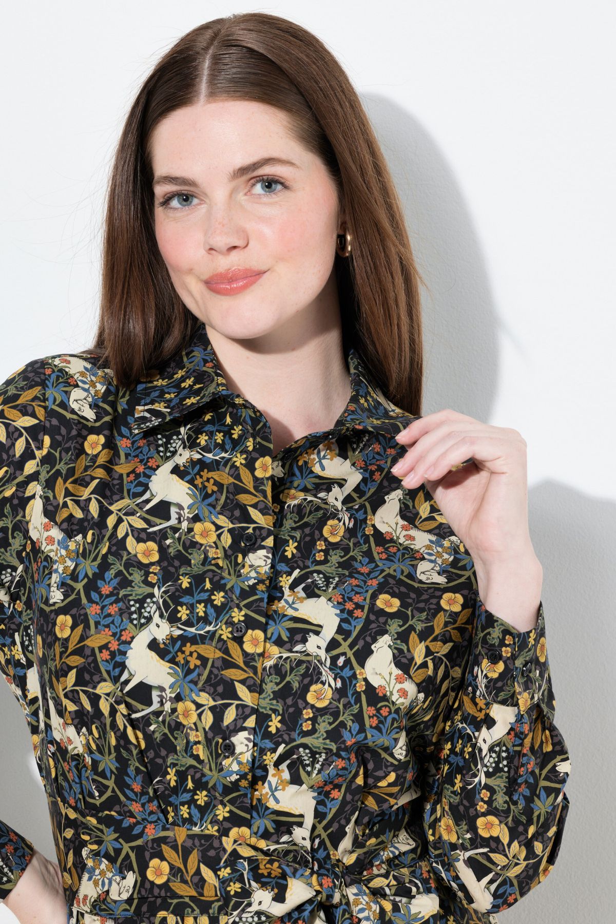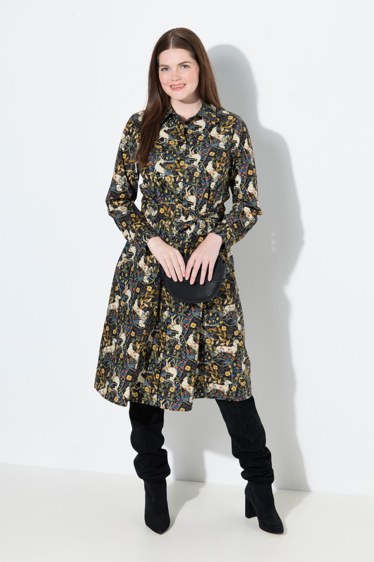 Owl Print Button-Down Dress - A playful owl print adds whimsical flair to this flattering belted style.