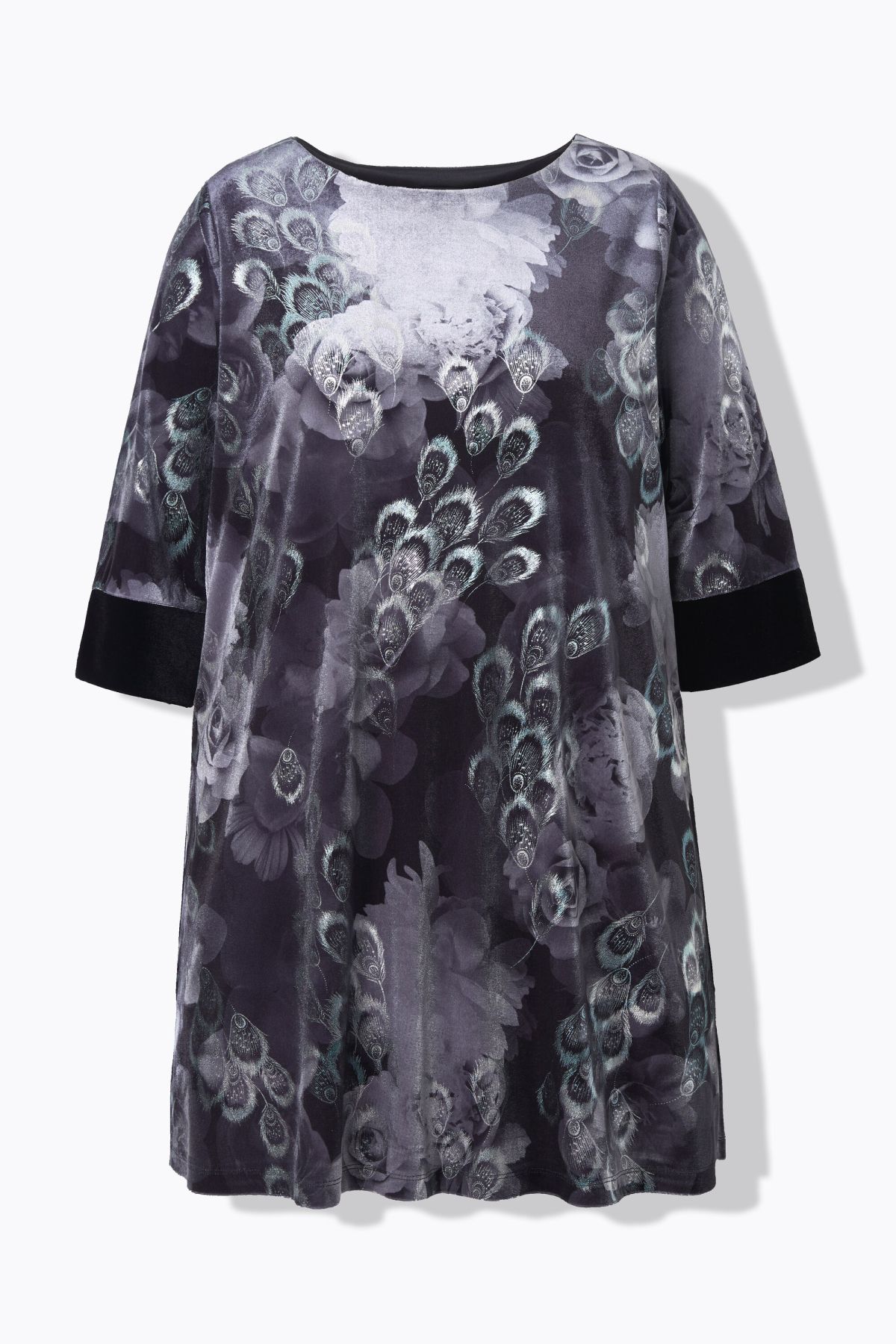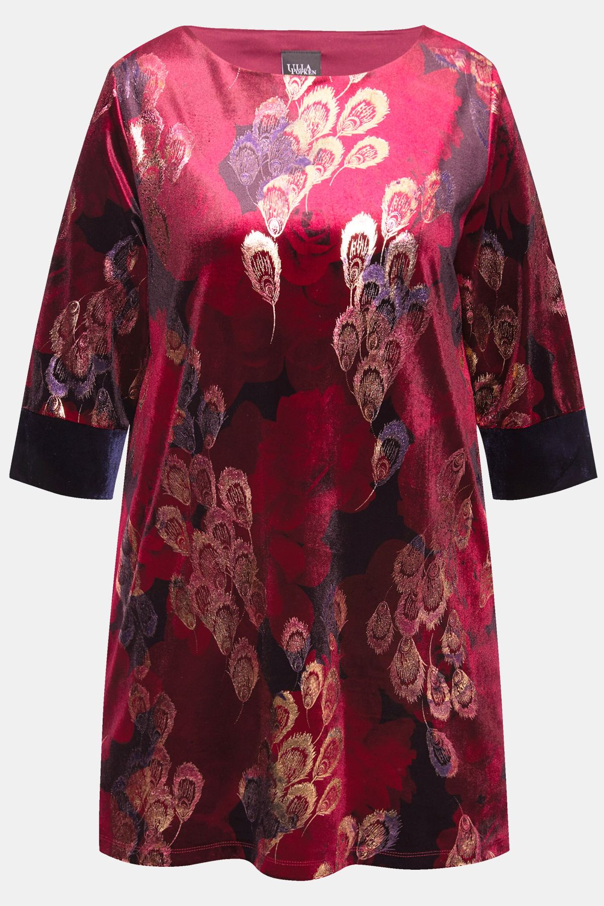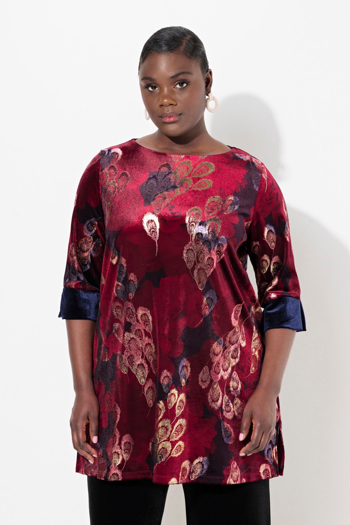 Velvet Peacock Feather 3/4 Sleeve Tunic Blouse