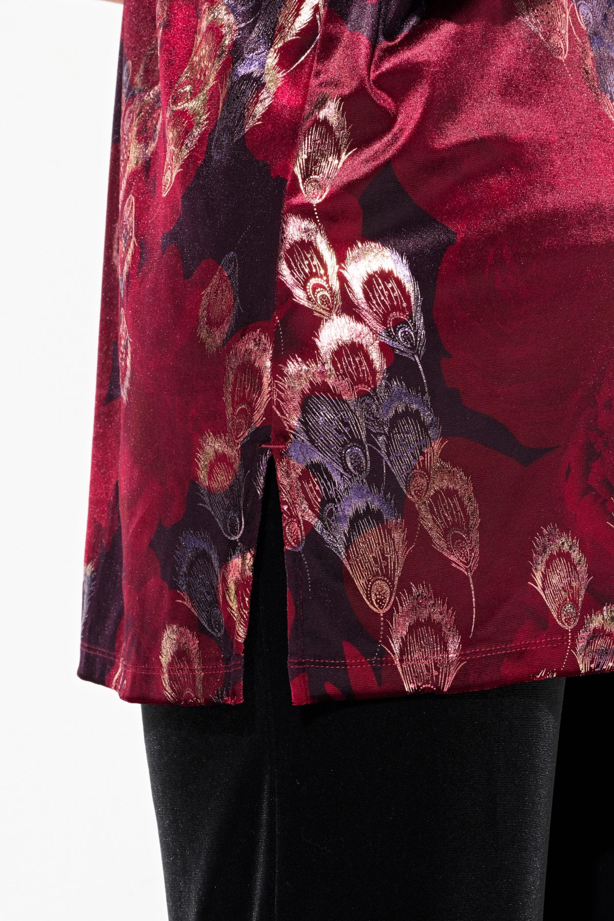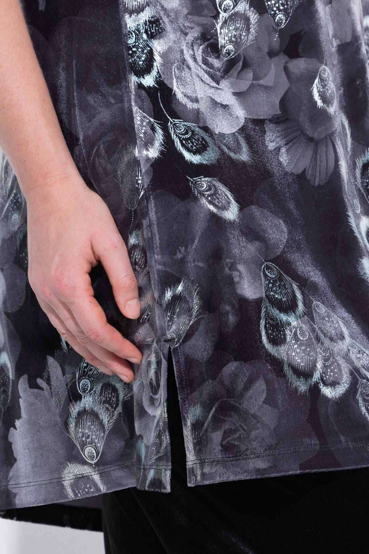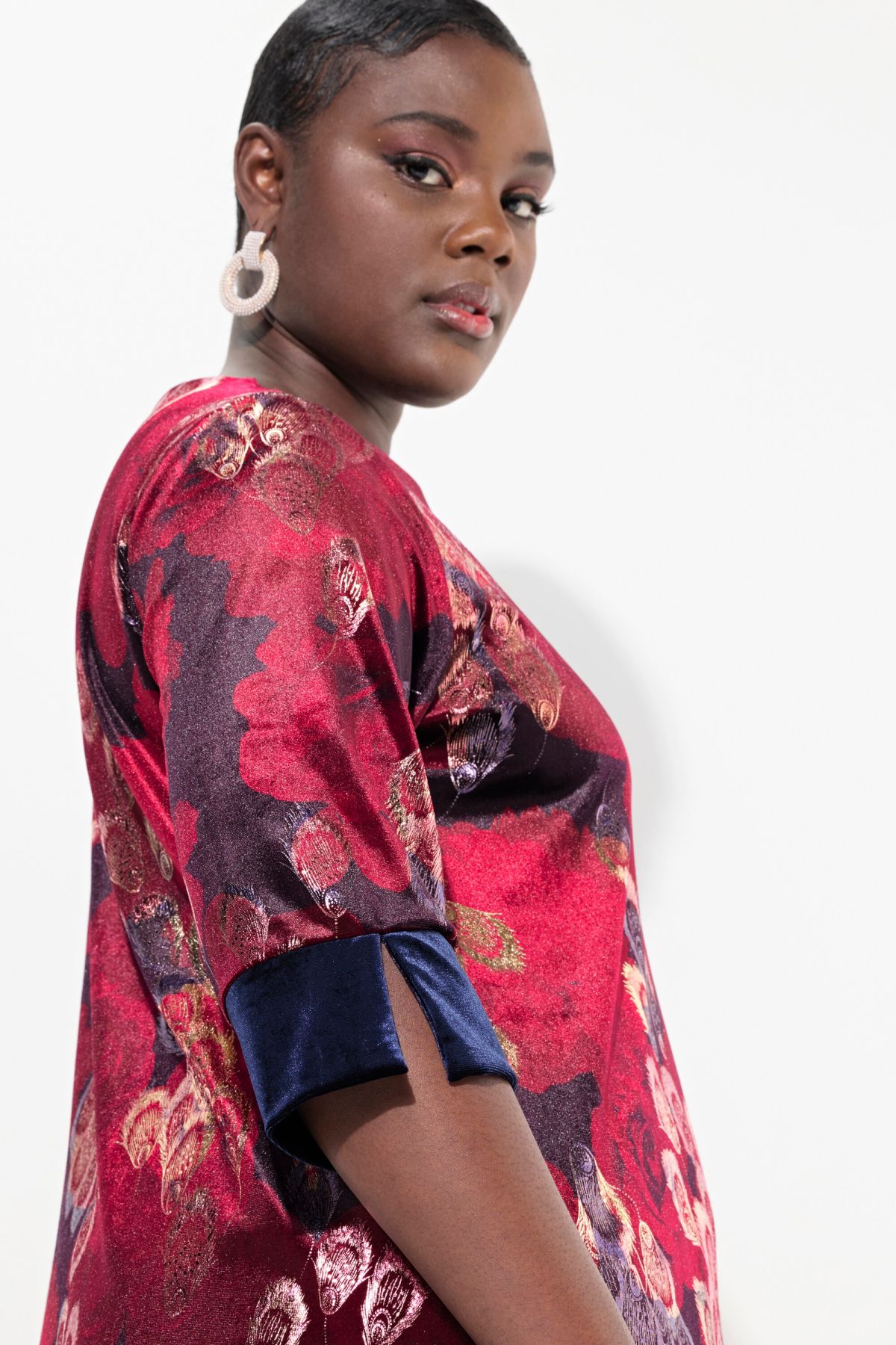 Velvet Peacock Feather 3/4 Sleeve Tunic Blouse