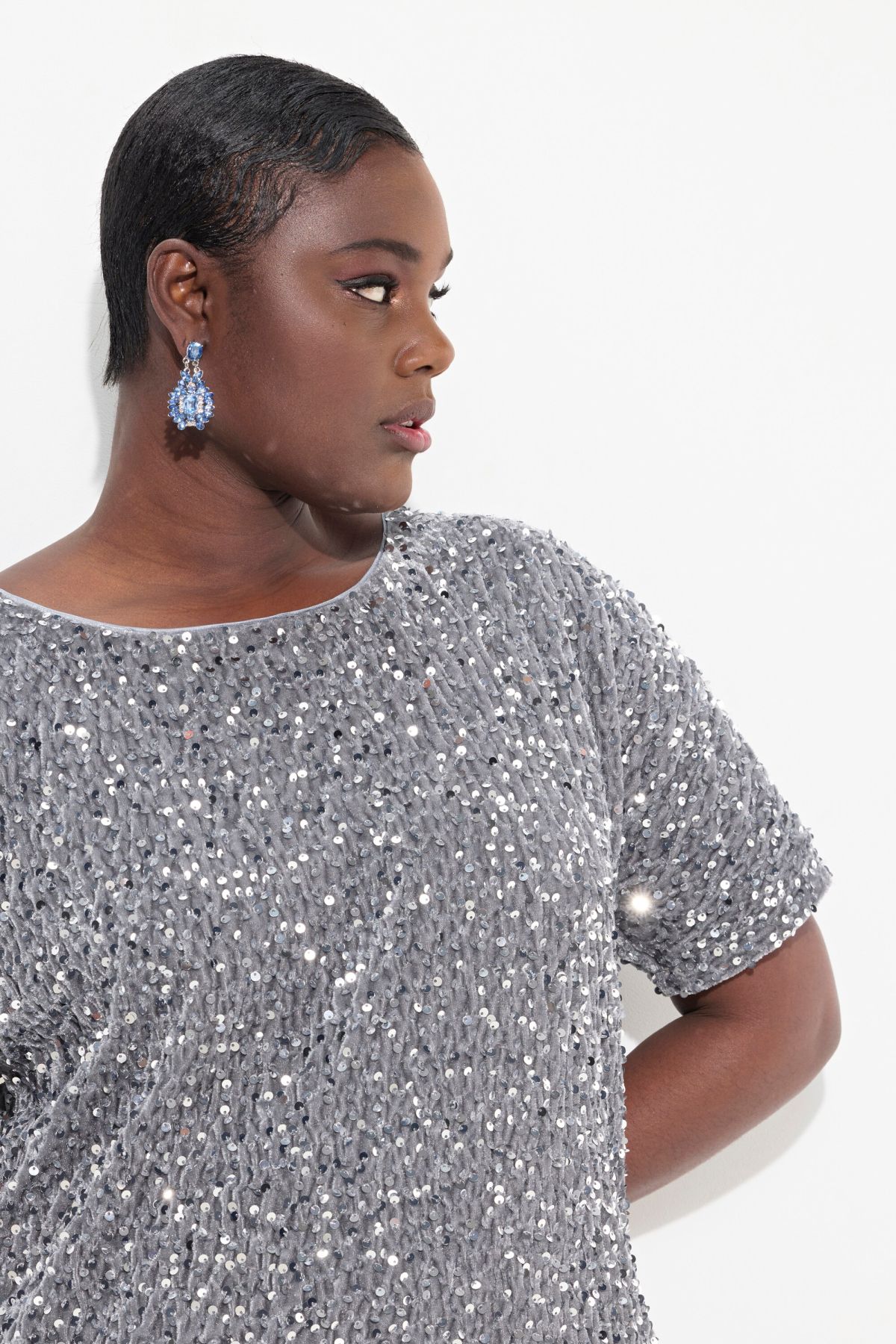 Sequined Velvet Blouse - Colorful sequins and luxurious velvet pair together in this deceptively comfortable silhouette.