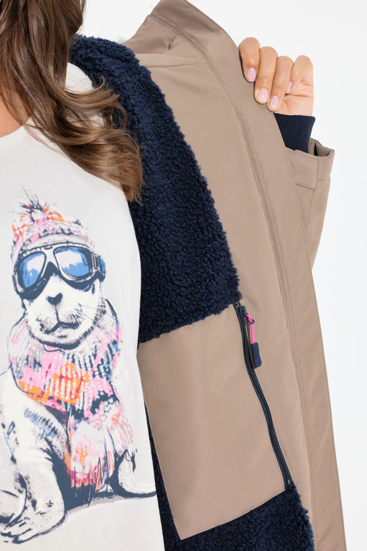 Triple Function Teddy Lines Coat - An oversized silhouette lined with cuddly soft teddy fleece for a weatherproof feel.