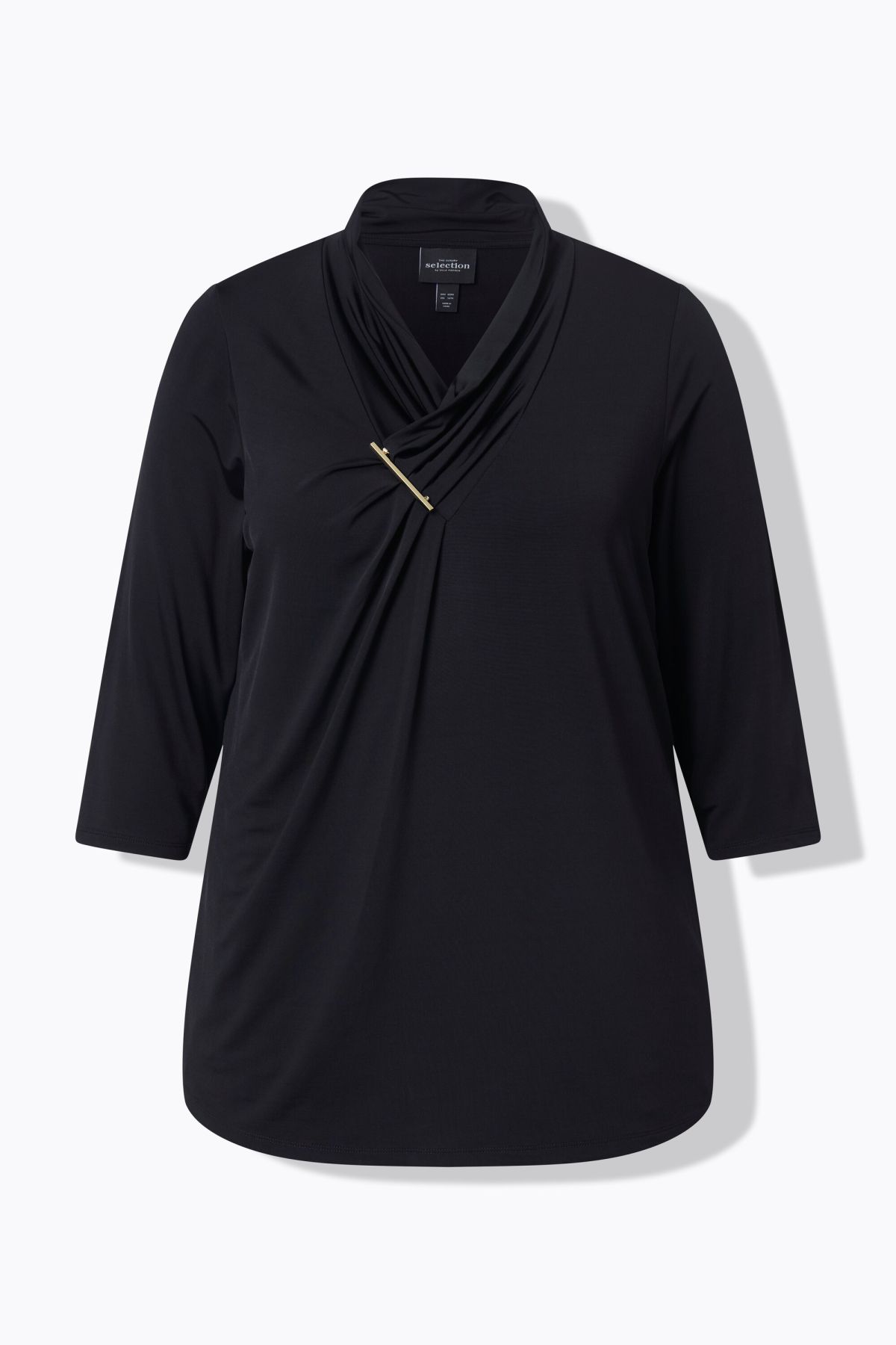 Waterfall Neckline 3/4 Sleeve Slinky Top