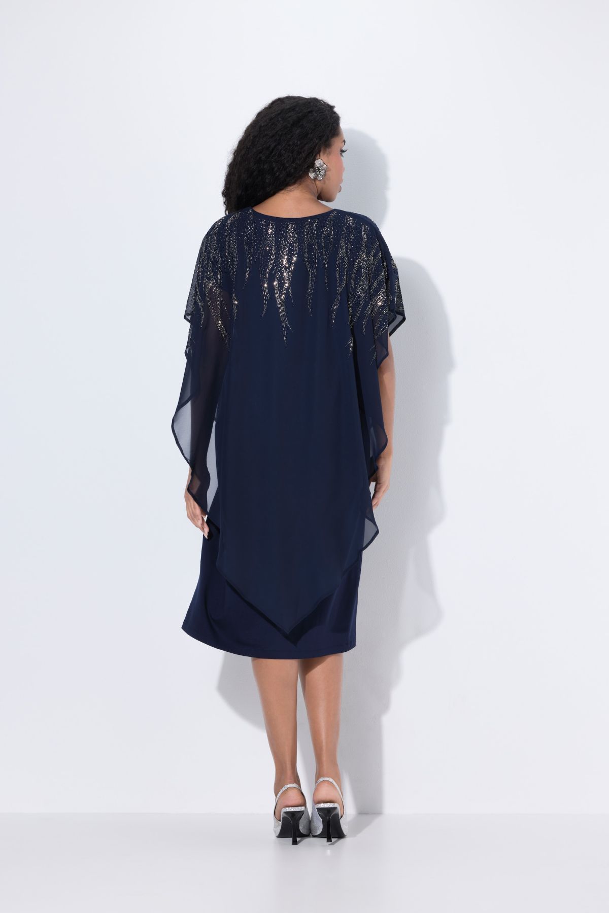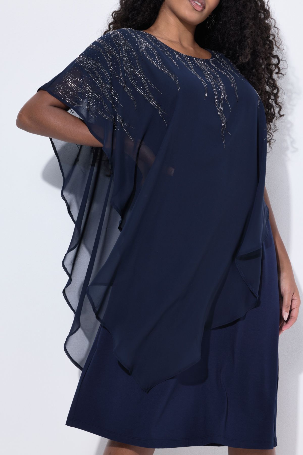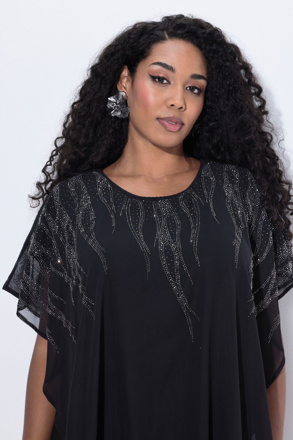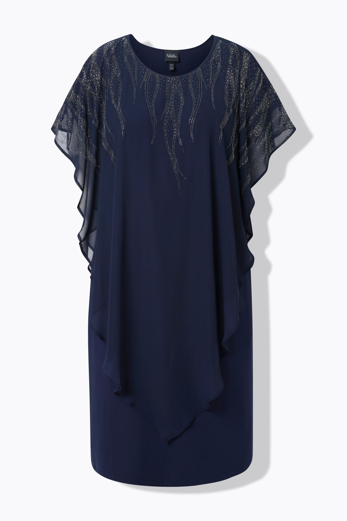 Layered Chiffon Midi Dress - A fluttering chiffon silhouette dripping with rhinestones.