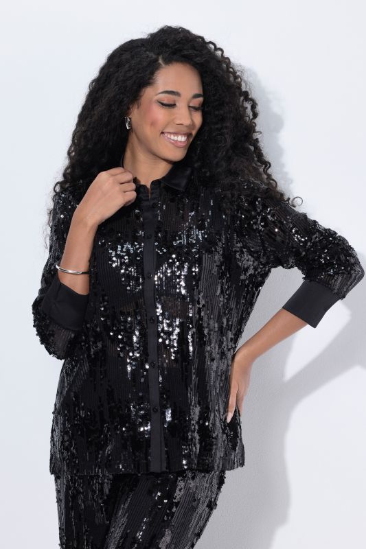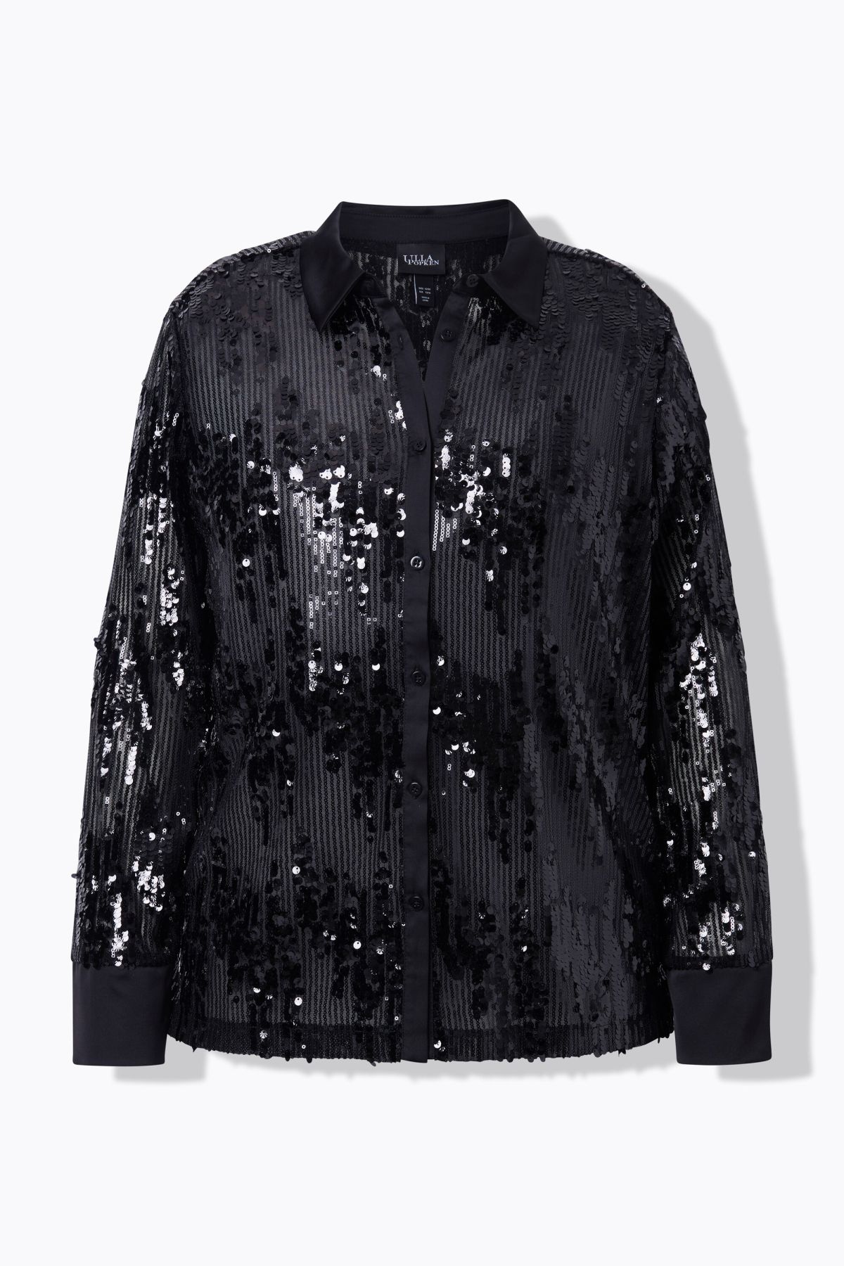 Sequined Button Down Blouse - Dazzle any room your in with this allover sequined pick.