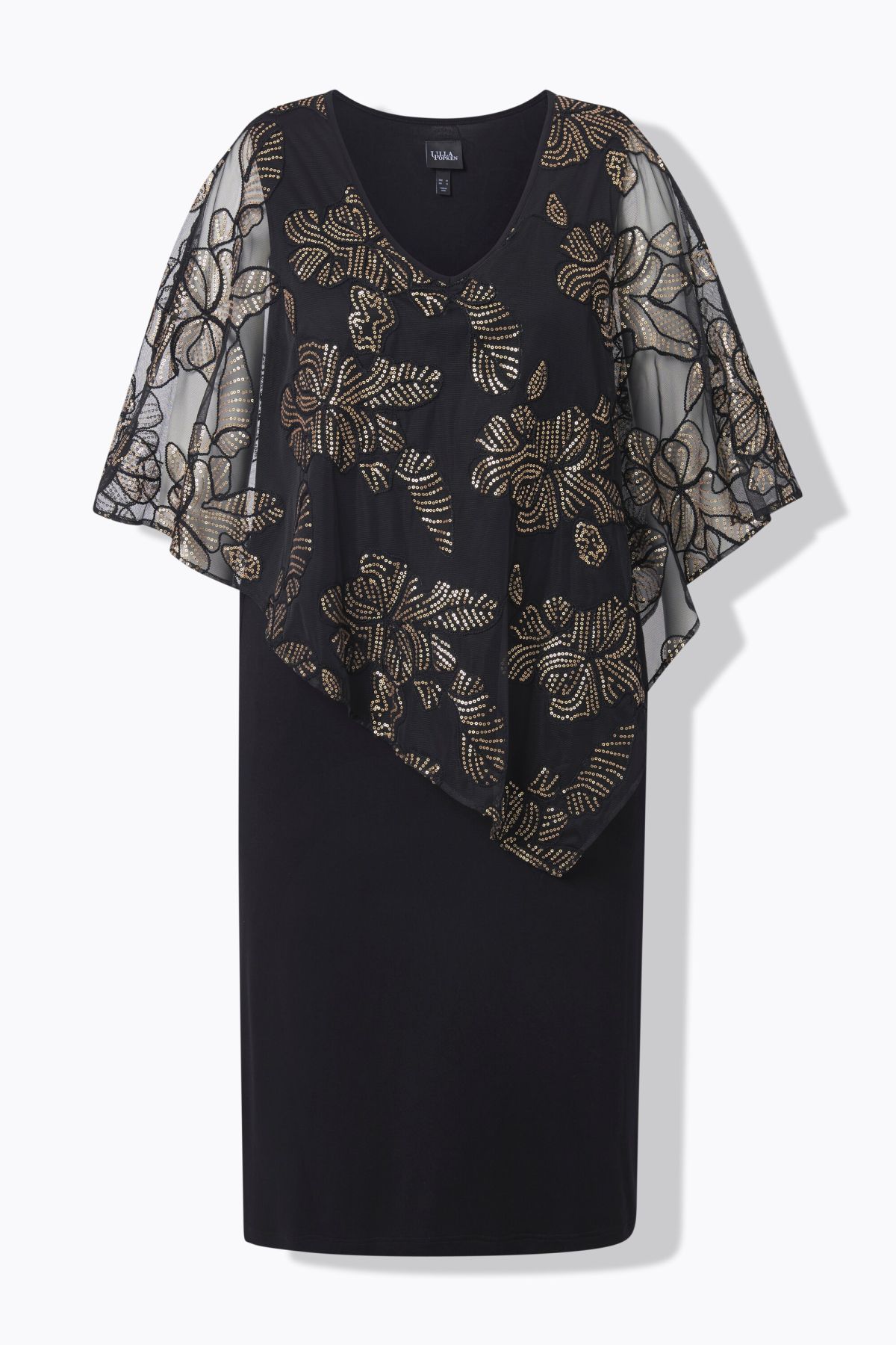 Sequined Layered Chiffon Dress - With a sequined floral wrap for a layered look.