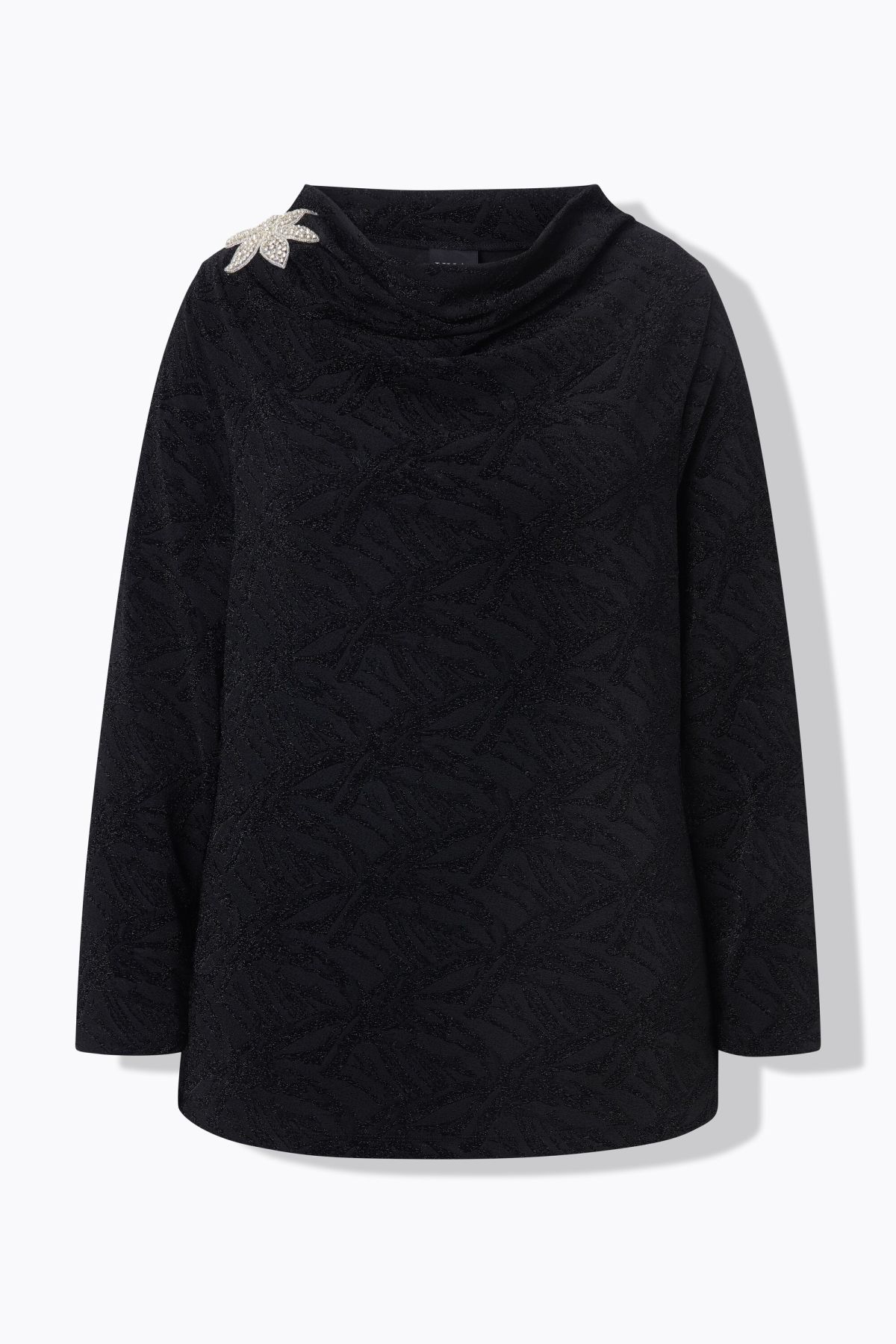 Sparkling Waterfall Neckline Top - Featuring a gracefully draped waterfall neckline and rhinestone flower applique.