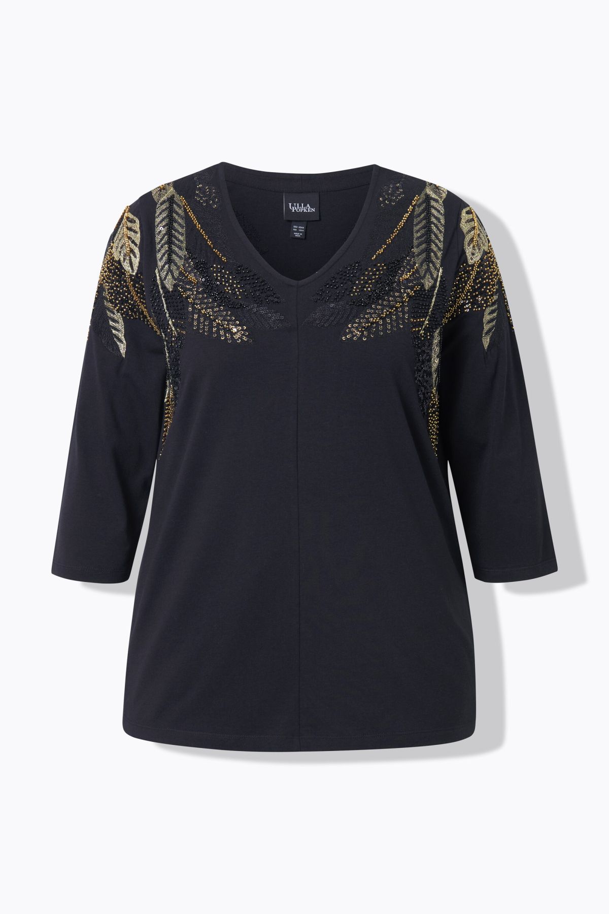 Feather Beadwork Top - Glittering sequined beadwork creates shimmering feathers across the shoulders of this comfortable modal pick.