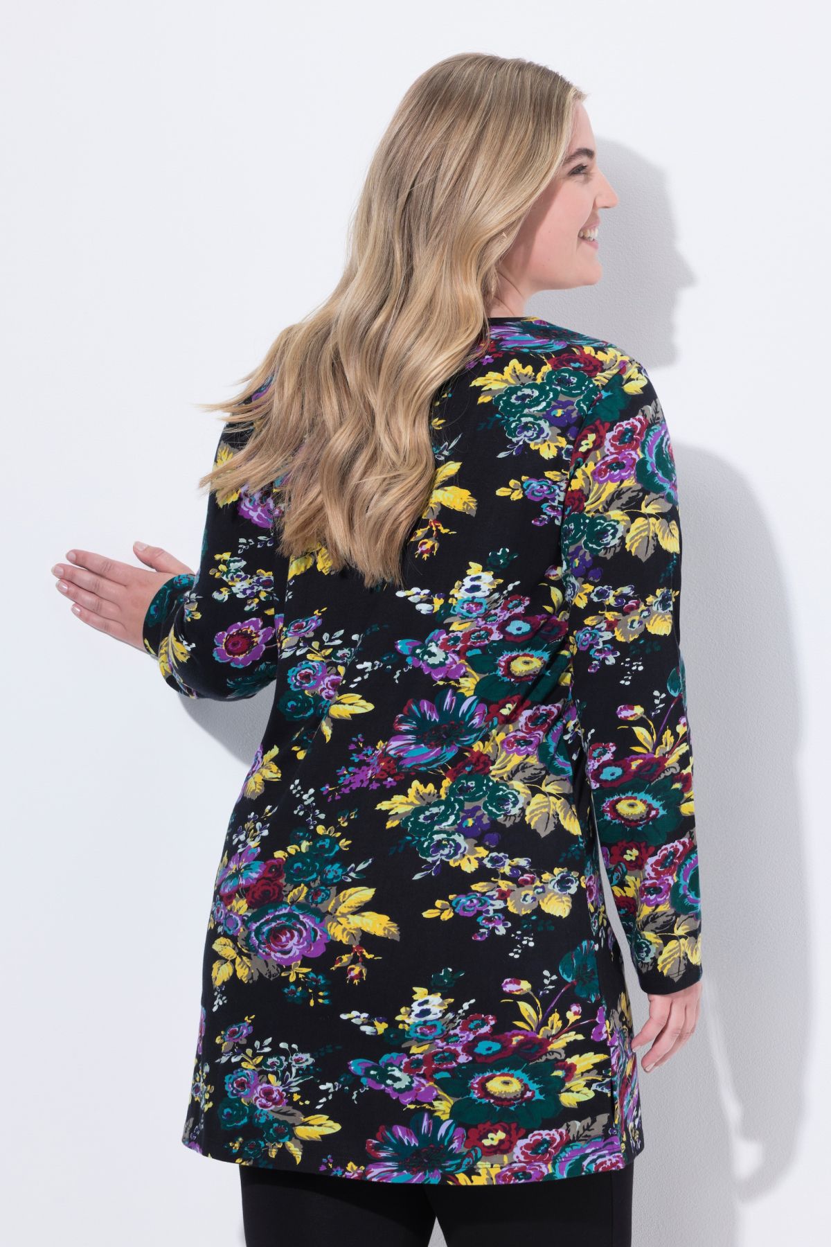 Electric Floral Print Empire A-Line Knit Tunic - A new color palette so bright it almost glows.