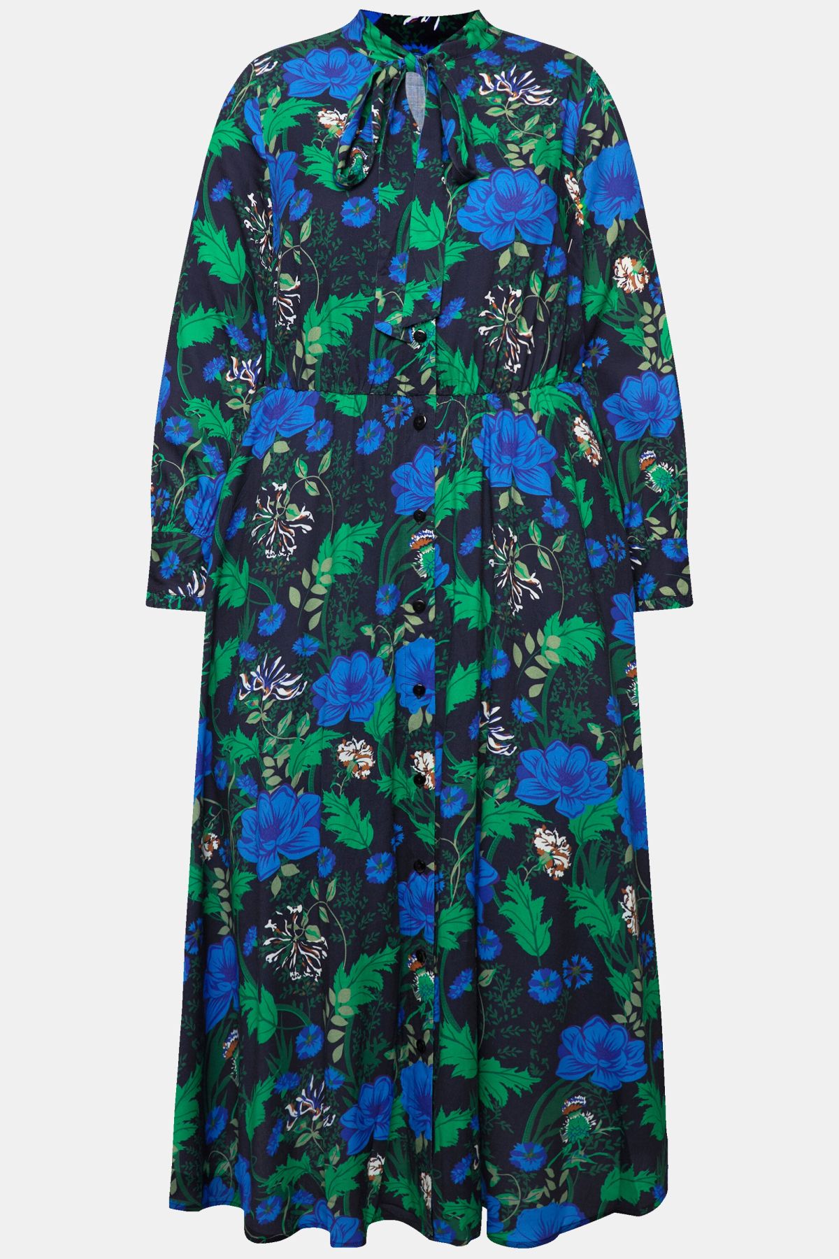 Floral Bow Tie Maxi Dress - A bright, modern twist on a traditional-inspired pick with a high-collared bow tie neckline for a tasteful, modest silhouette.