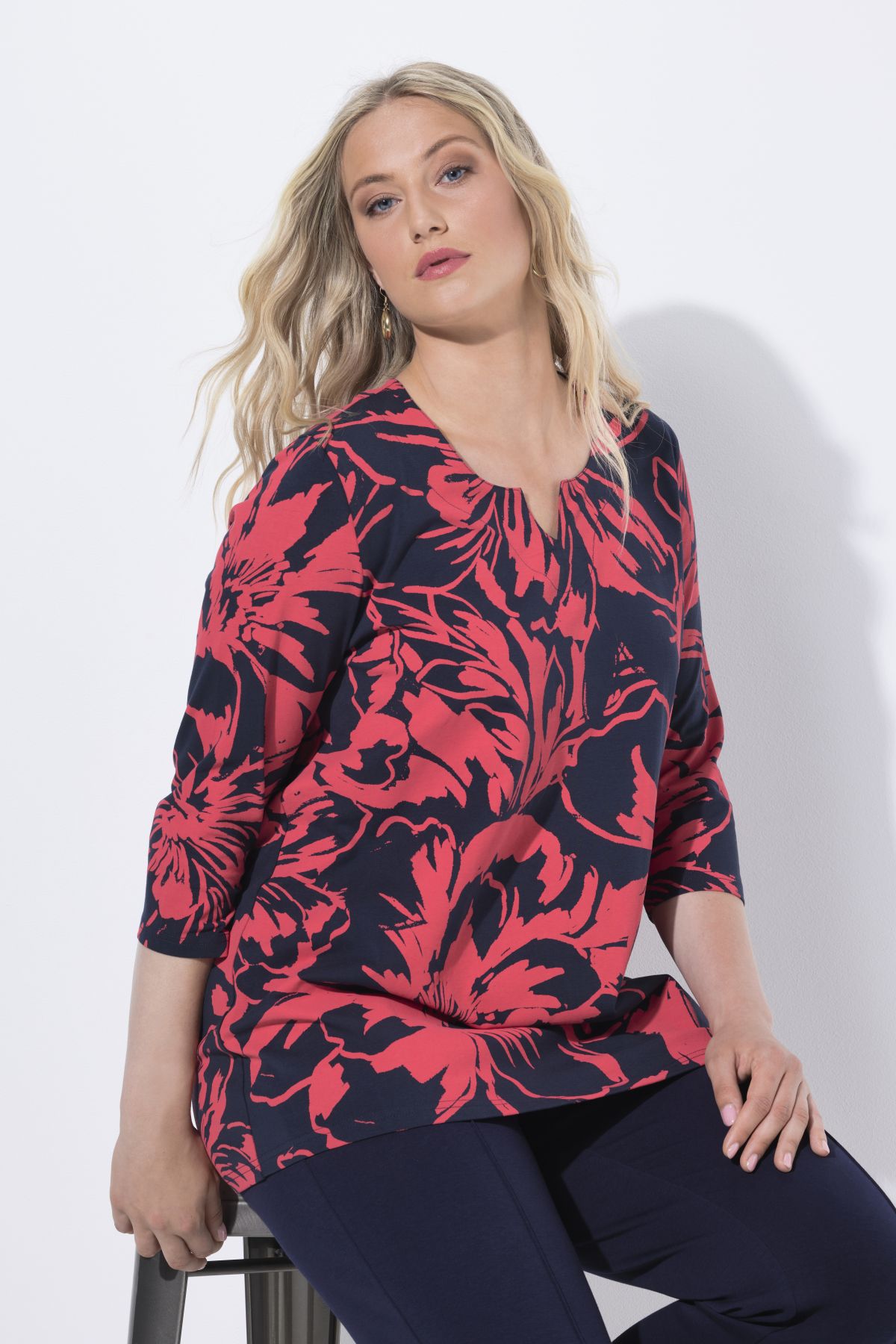 Posterized Floral Tee - A high-contrast print with a flattering split neckline.