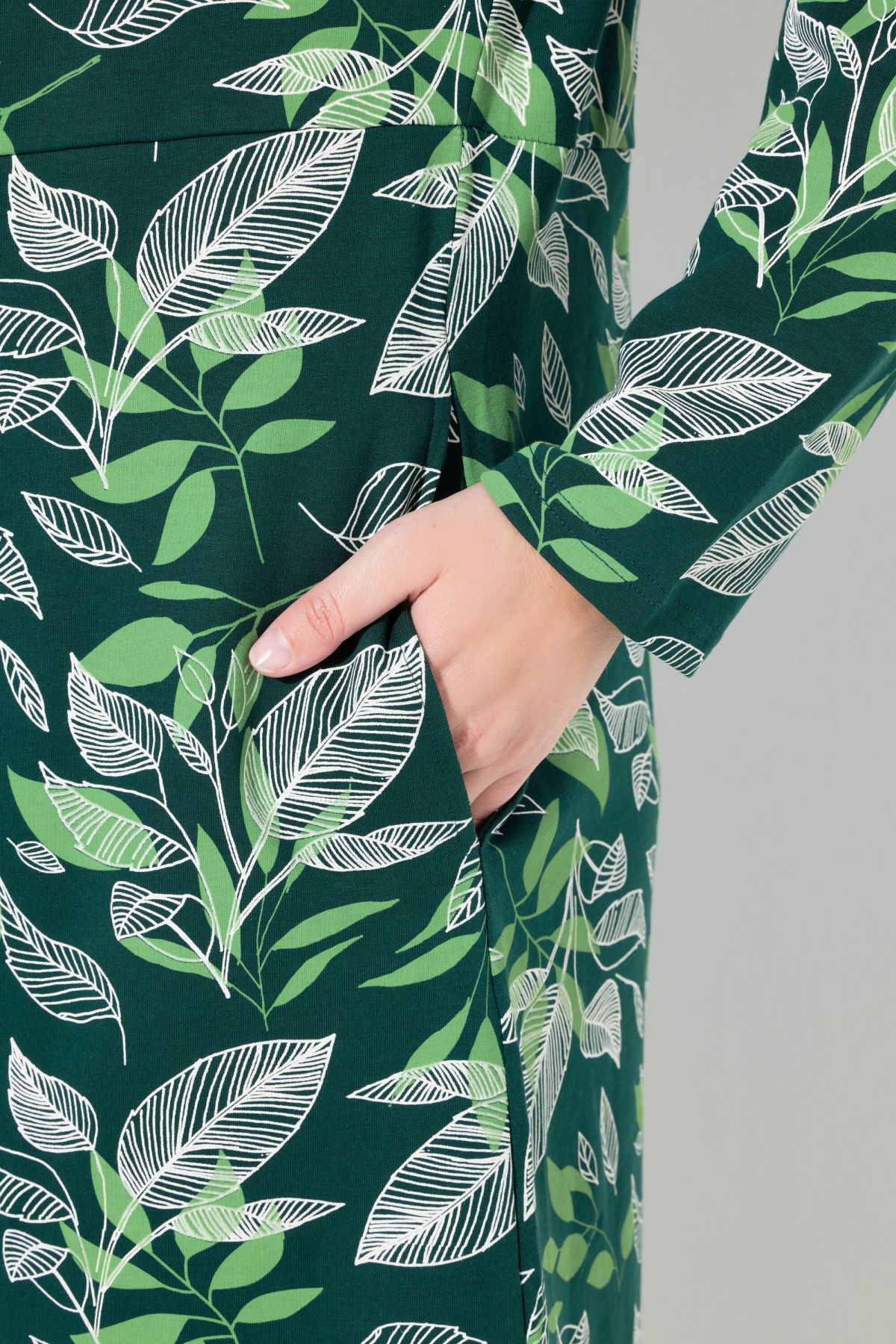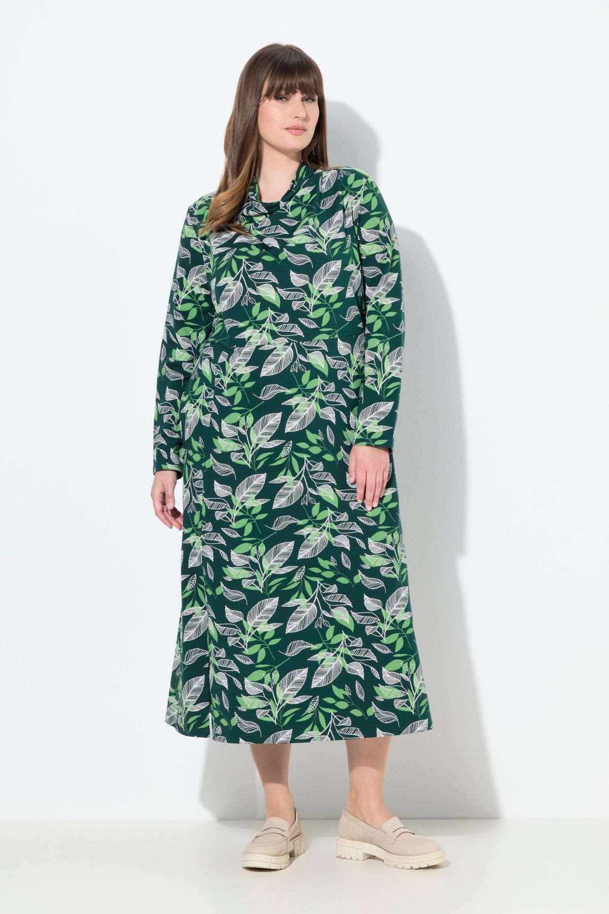 Eco Cotton Leaf Print Waterfall Collar Sweatshirt Dress