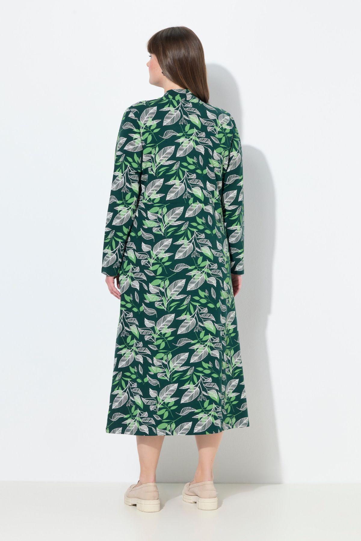 Eco Cotton Leaf Print Sweatshirt Dress - Featuring an elegant waterfall collar for a polished finish.