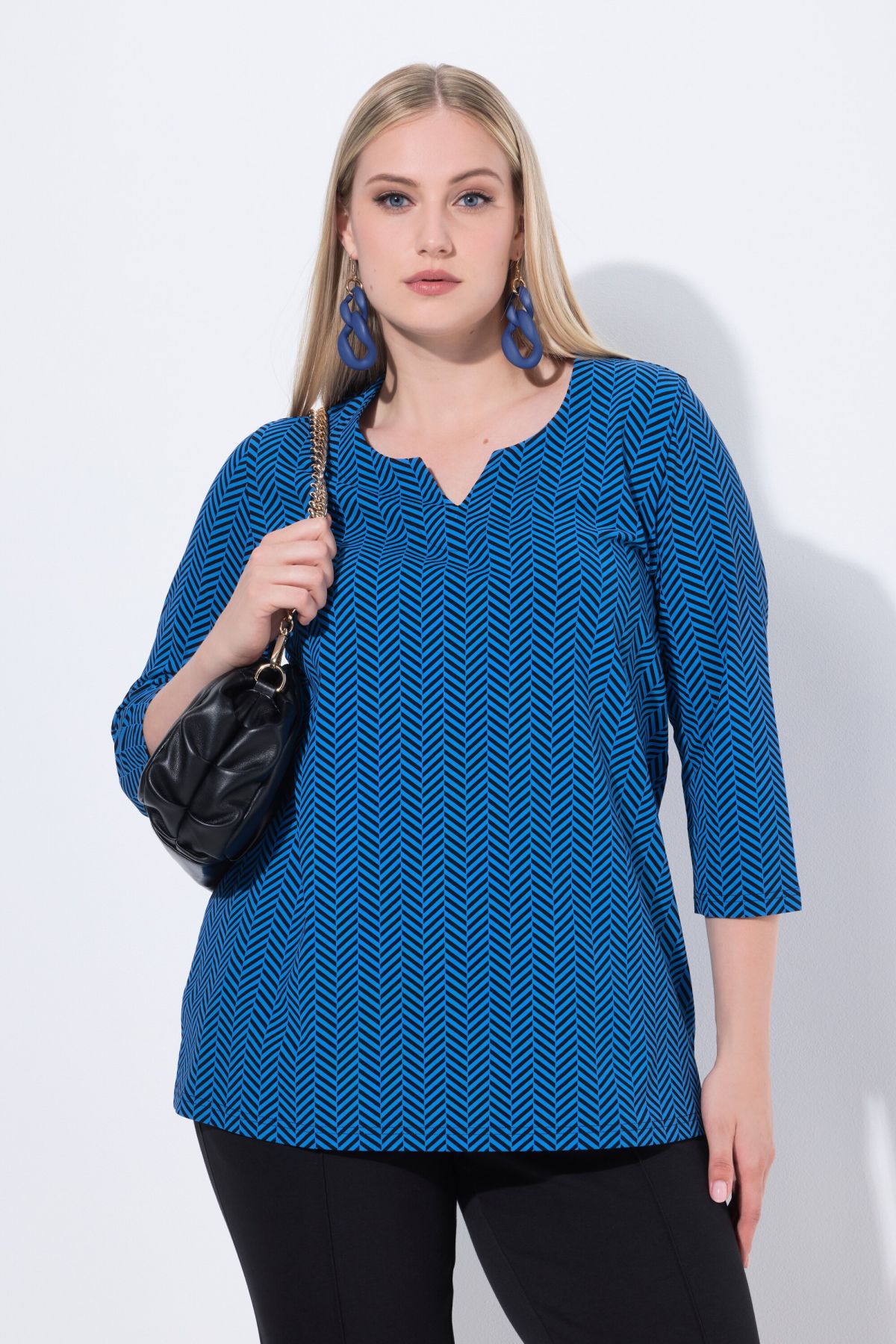 Herringbone Print Tee# a classic herringbone pattern and flattering a-line fit in a style you'll love to wear over and over. Round notch neck and 3/4 sleeves.