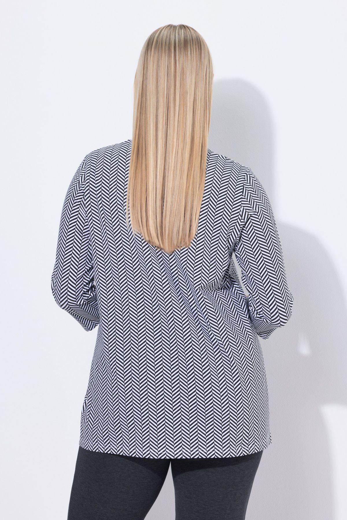 Herringbone Print Tee# a classic herringbone pattern and flattering a-line fit in a style you'll love to wear over and over. Round notch neck and 3/4 sleeves.