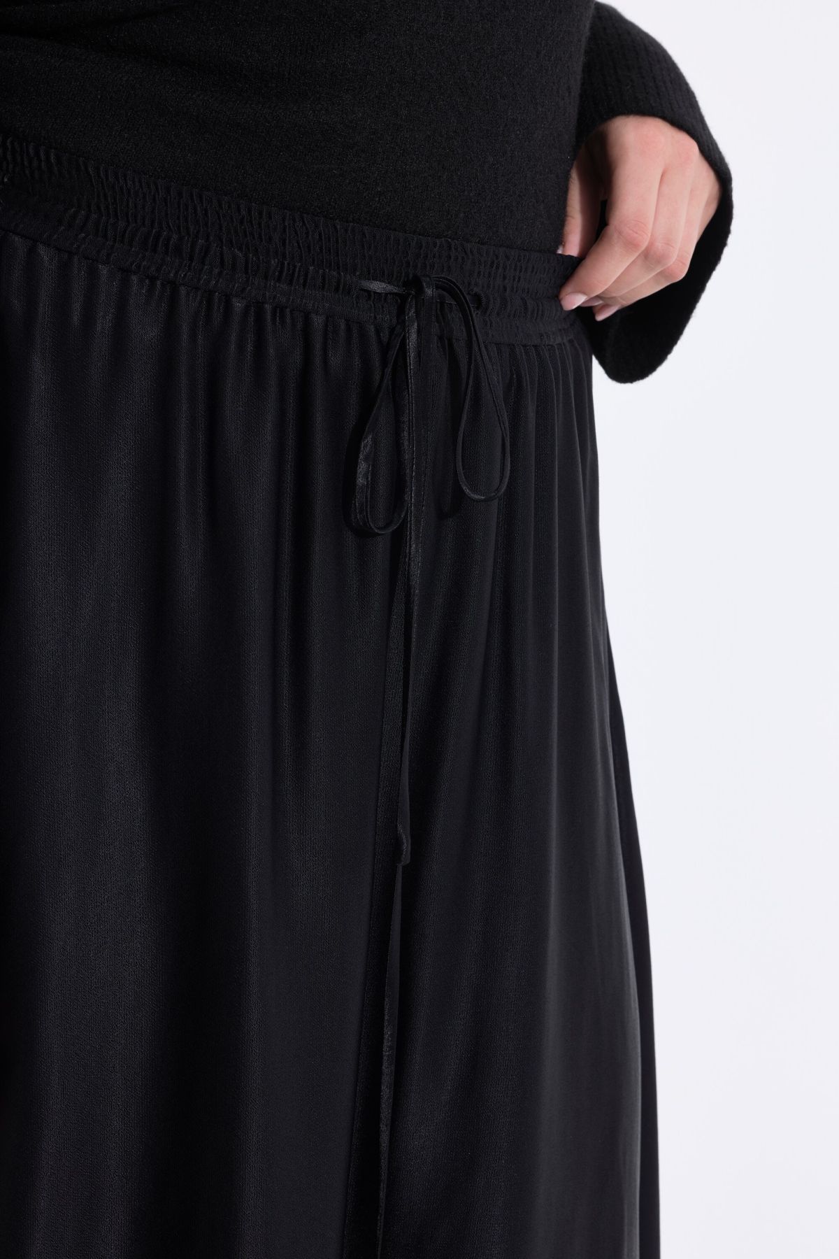 Gathered Satin Skirt - Elegant shimmering satin and a flattering gathered elastic waistband make this the perfect blend of fashion and comfort.