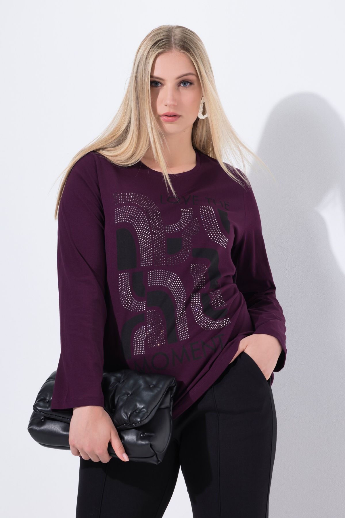 Geometric LOVE THE MOMENT Graphic Tee - Sparkling rhinestones and motivational lettering elevate this stretchy cotton style.