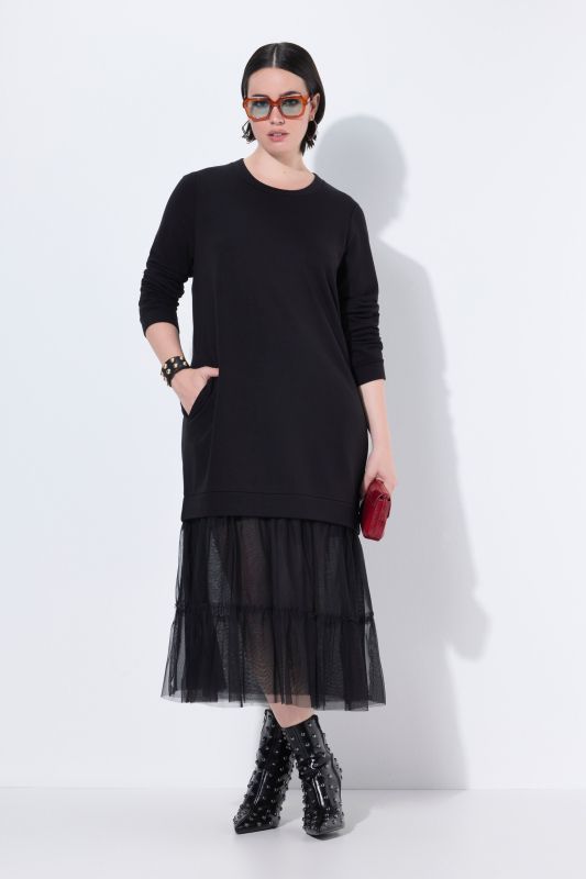 Tulle Sweatshirt Dress - Edgy yet sophisticated, with a tiered tulle flounce panel for a playful finish.