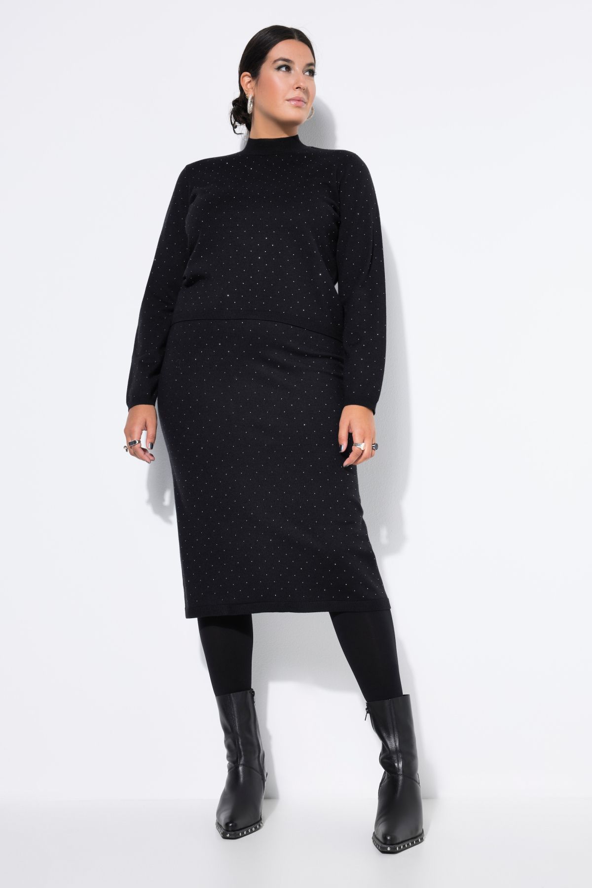 Rhinestone Studded Knit Skirt - A curve-hugging knit style dotted with sparkling rhinestones.