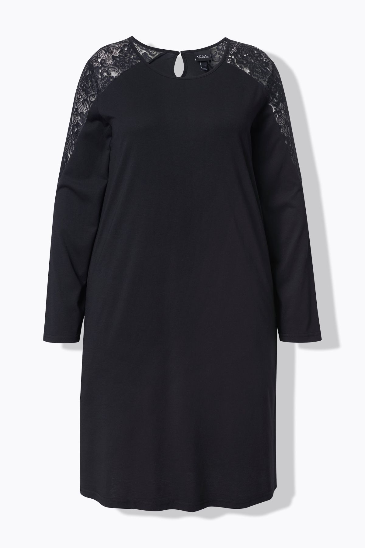 с нежна дантела на раменете, кръгло деколте на гърба с цепка и копче, удобна кройка със странични цепки, изключително мека смес от модал и памук, OEKO-TEX - Произведено в зелено, дължина приблизително 100-105 см.