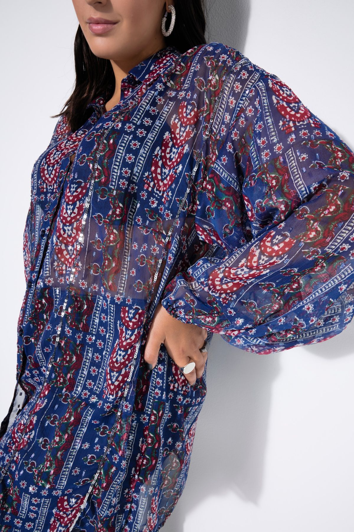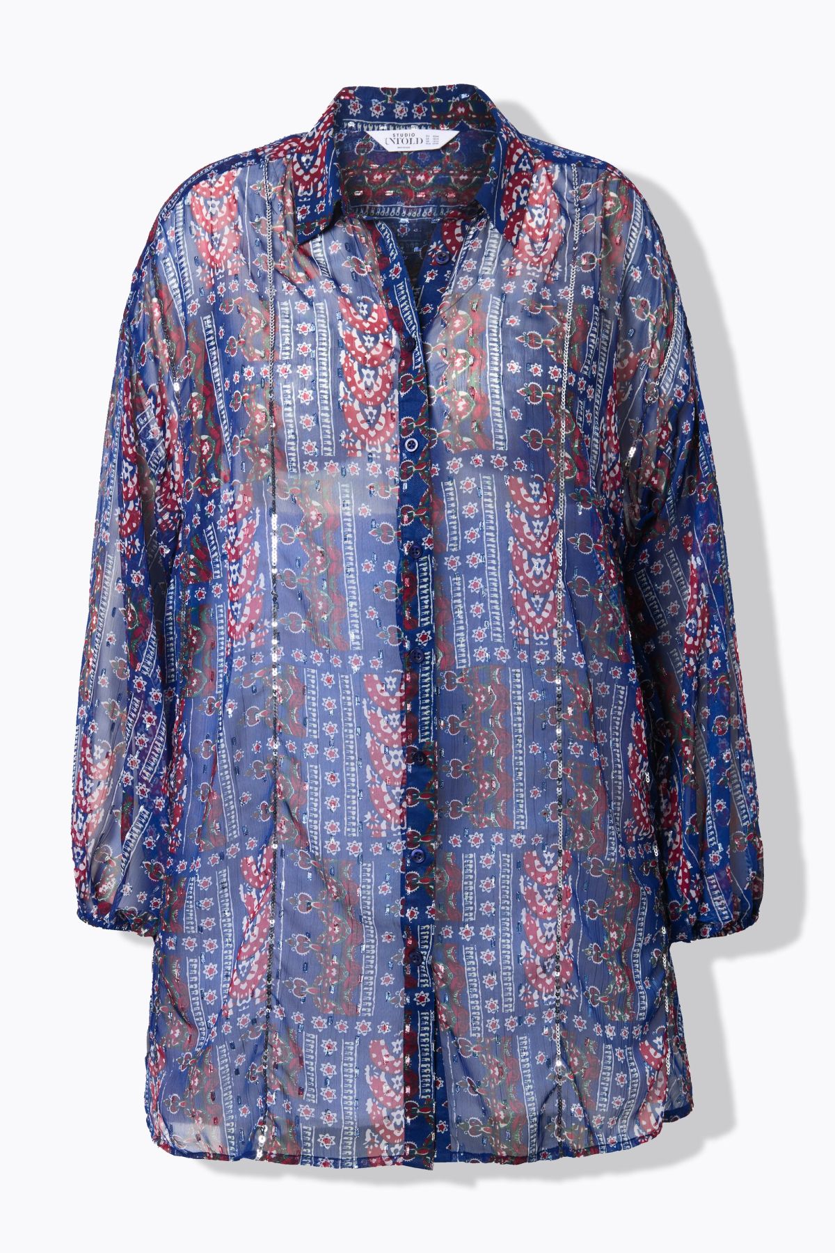 Chiffon blouse, loose shape, patch print, balloon long sleeve