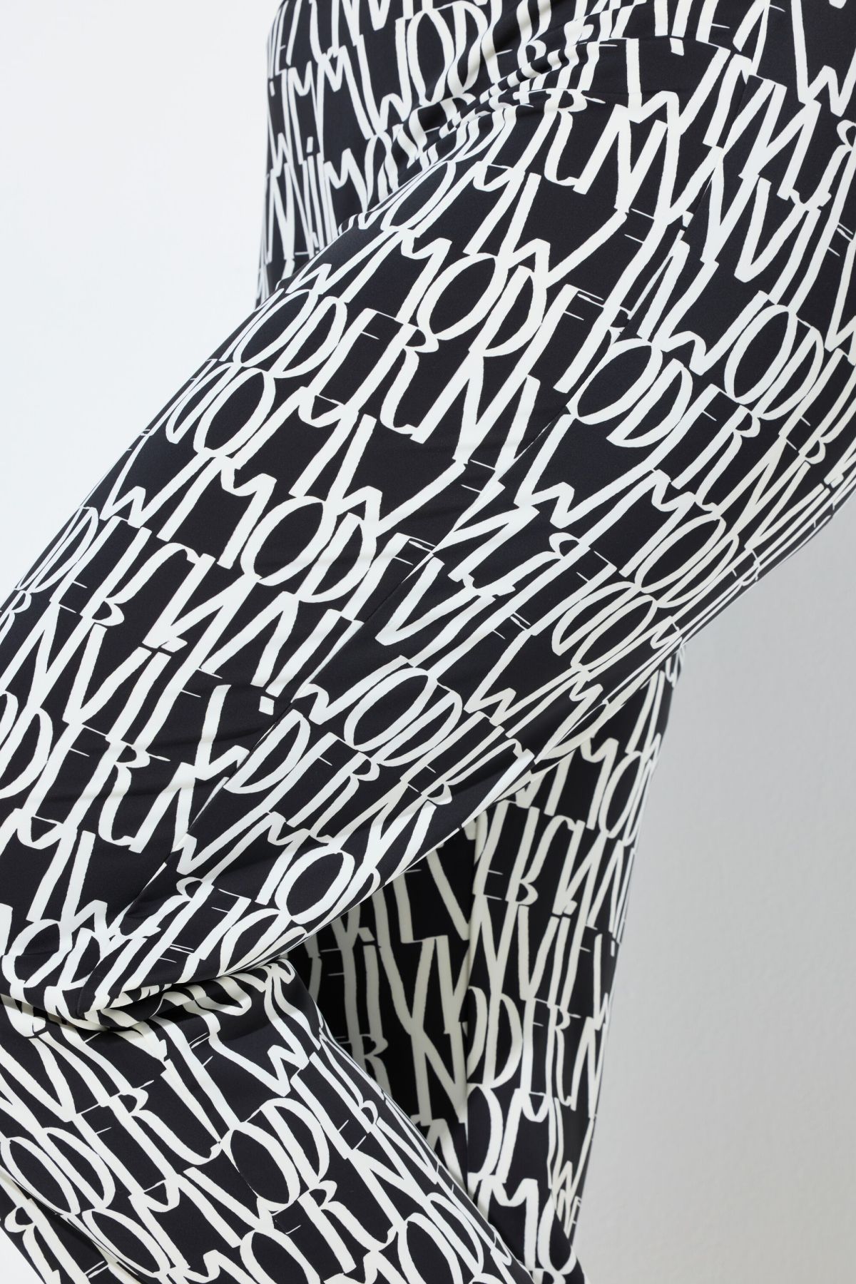 Modern View Print Pants Contrast color lettering covers this comfortably stretchy silhouette