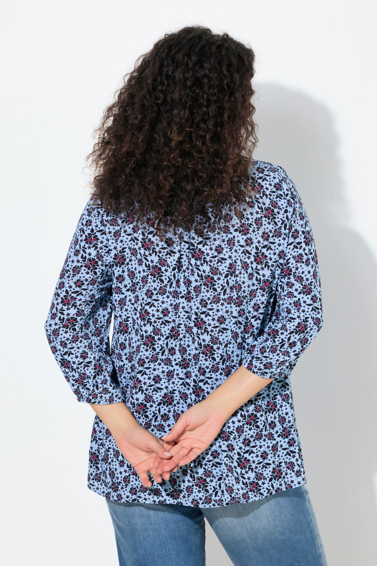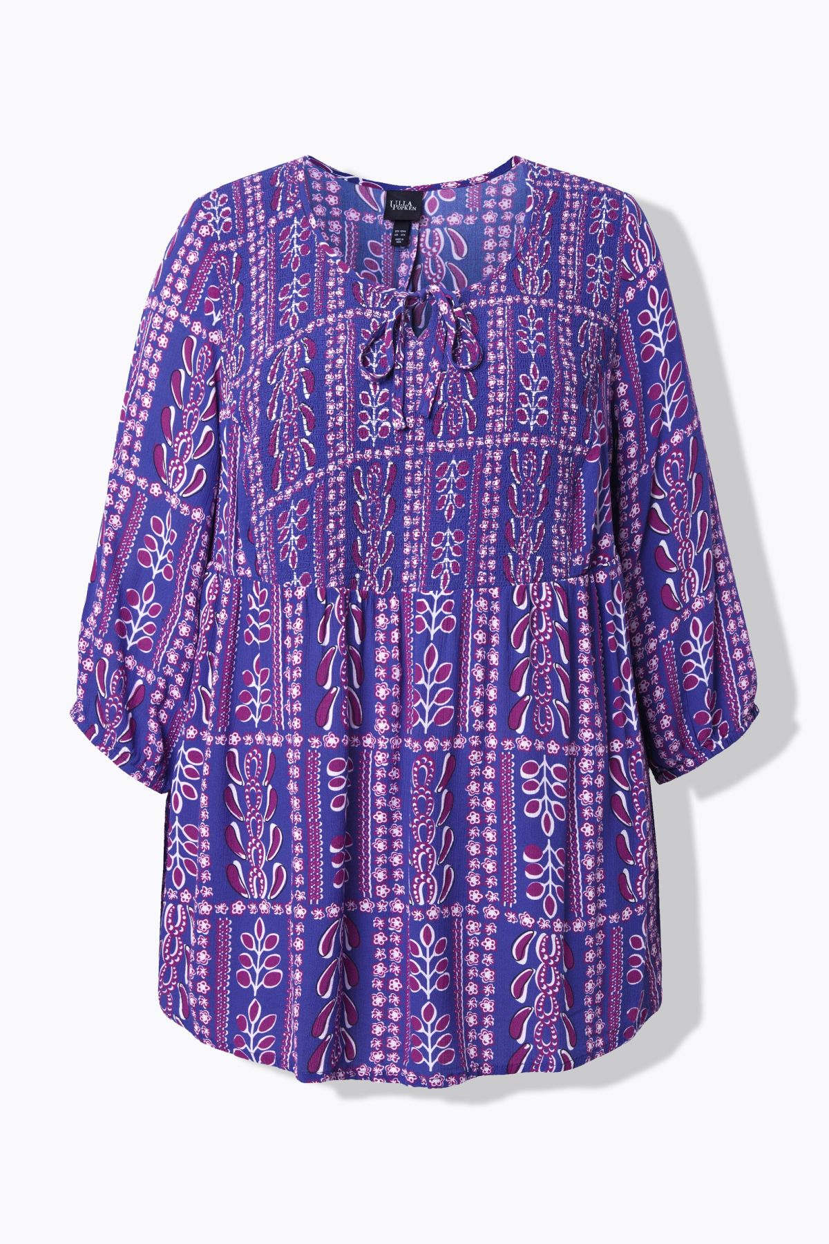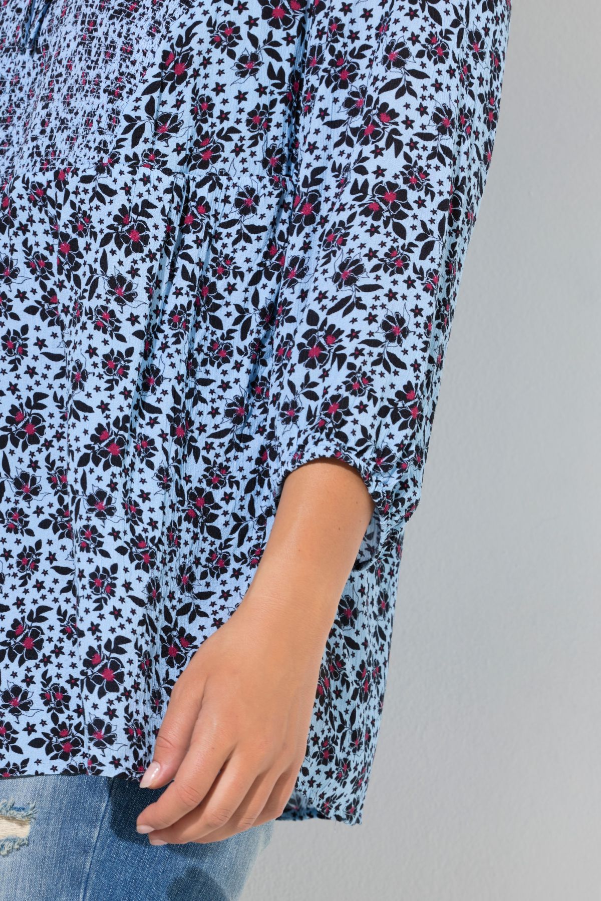Smocked 3/4 Sleeve Blouse - A radiant allover print with a smocked bodice for a fit-and-flare silhouette.