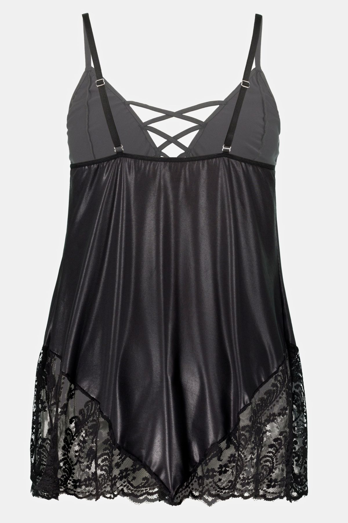 2 Piece Faux Leather Negligee Set - A dramatic plunging neckline and bold wet-look faux leather finish you'll want to show off.