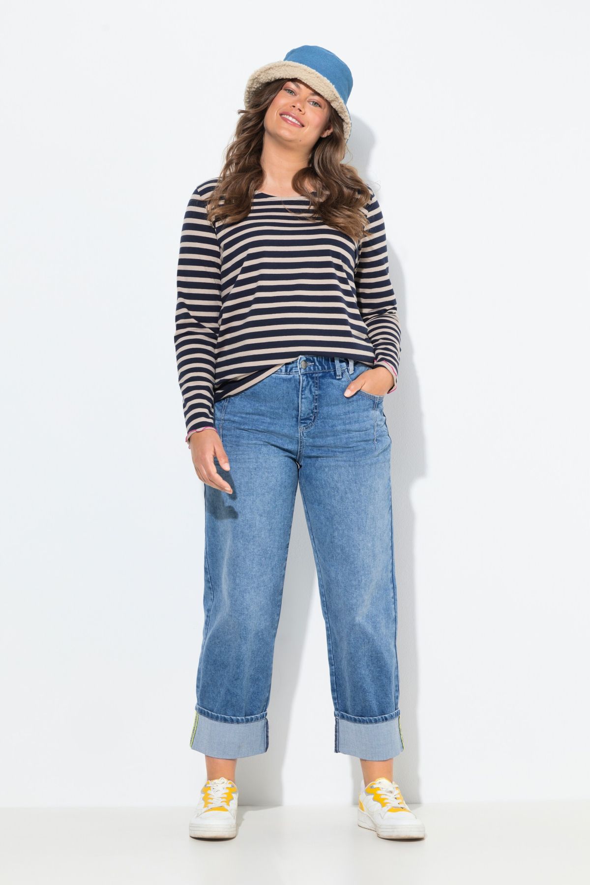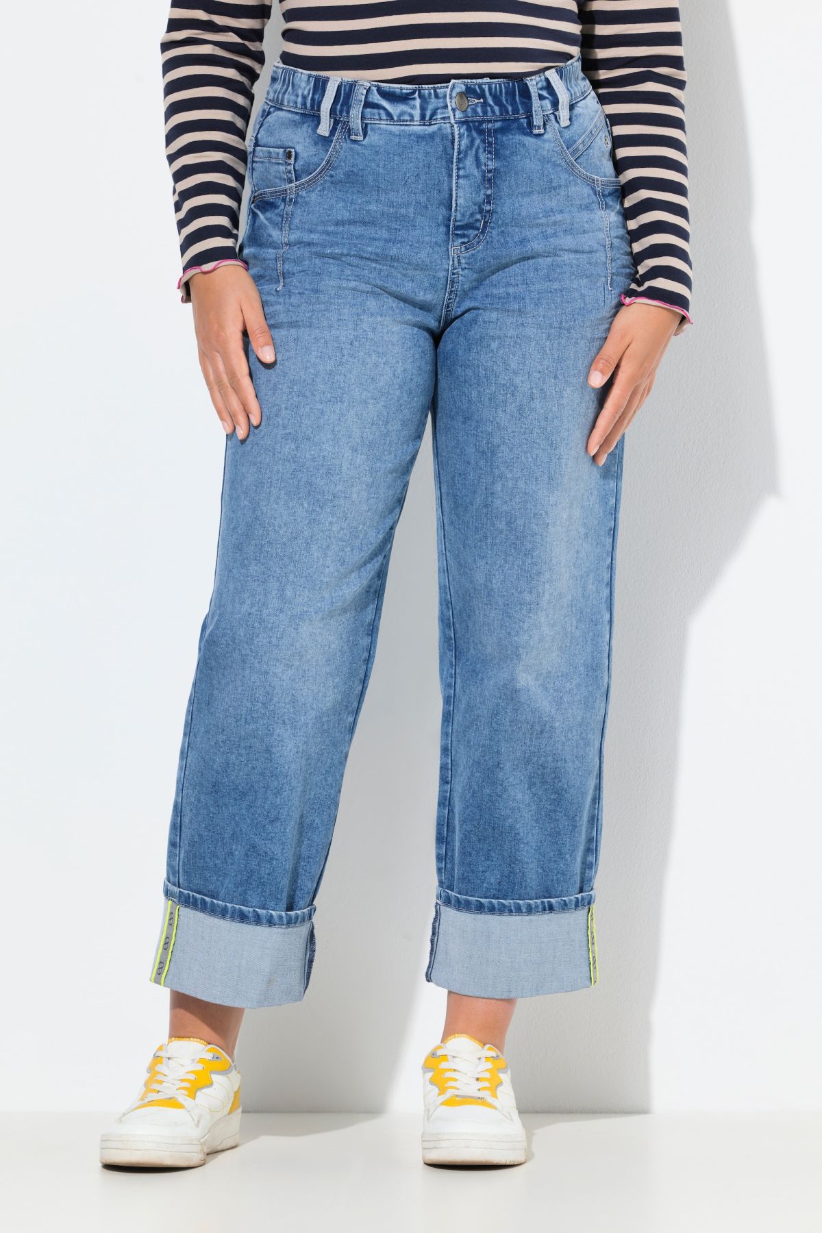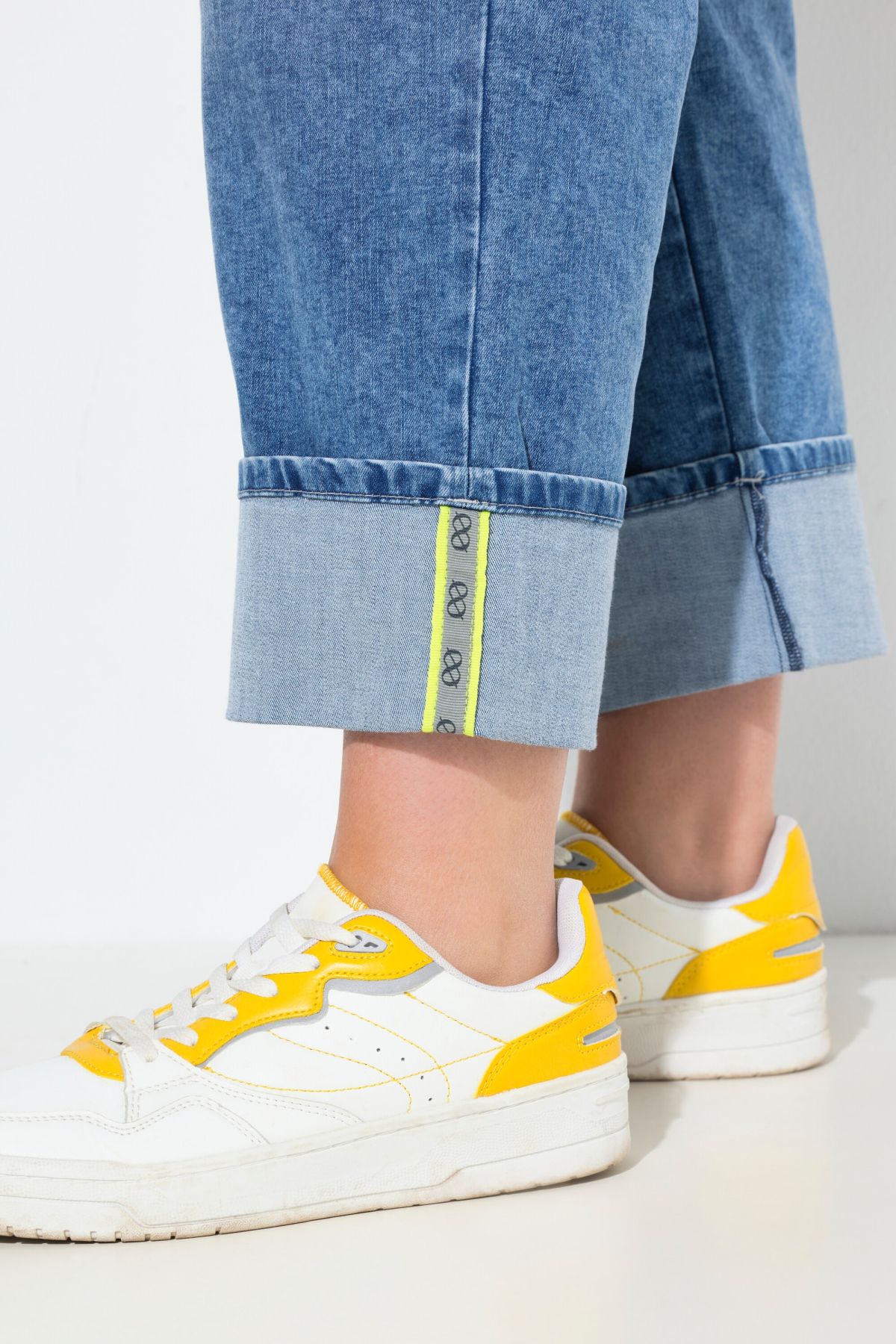 Stretch Fit Cuffed Wide Leg Jeans - Retro 90s-inspired style with a relaxed fit and wide cuffs.