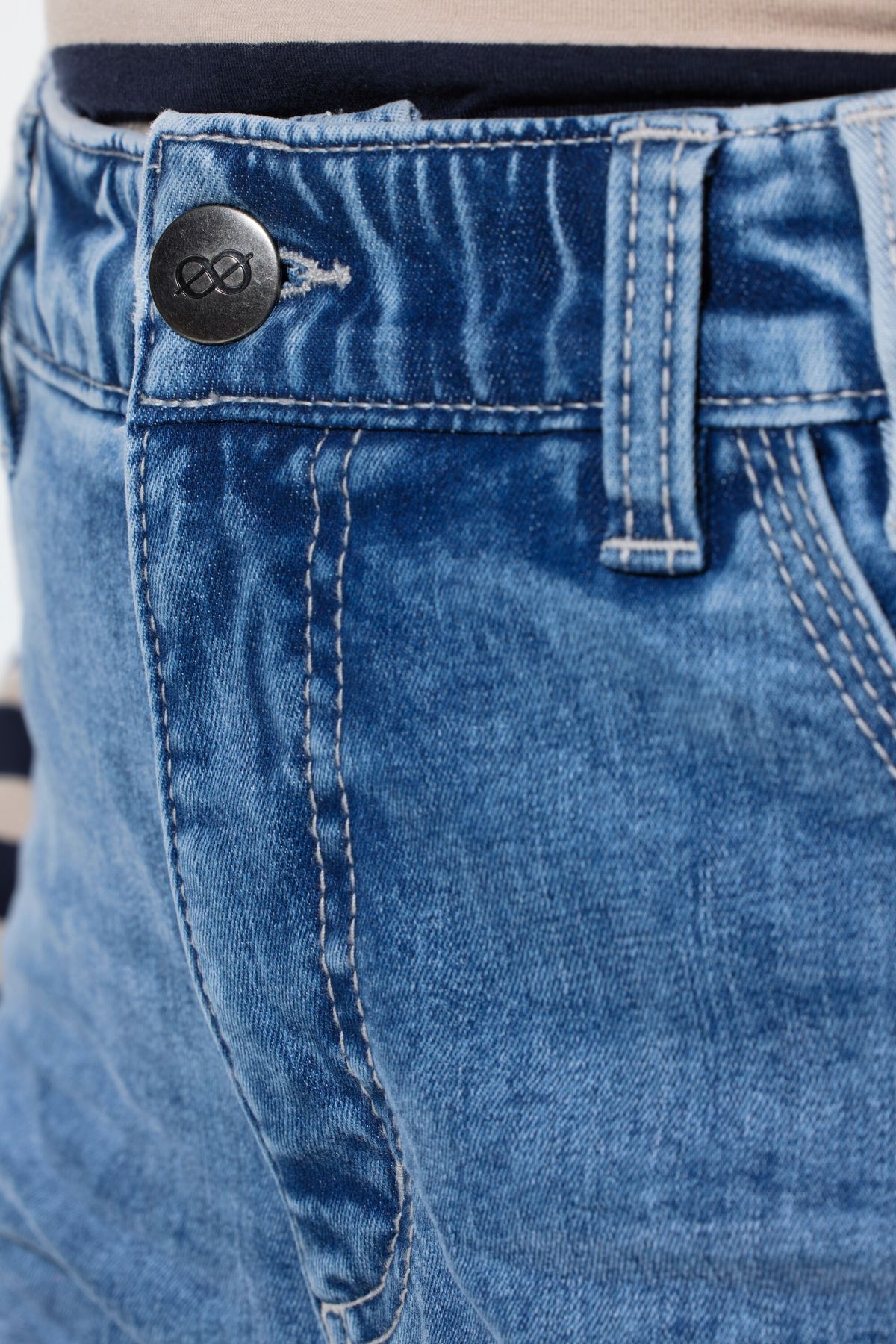 Stretch Fit Cuffed Wide Leg Jeans