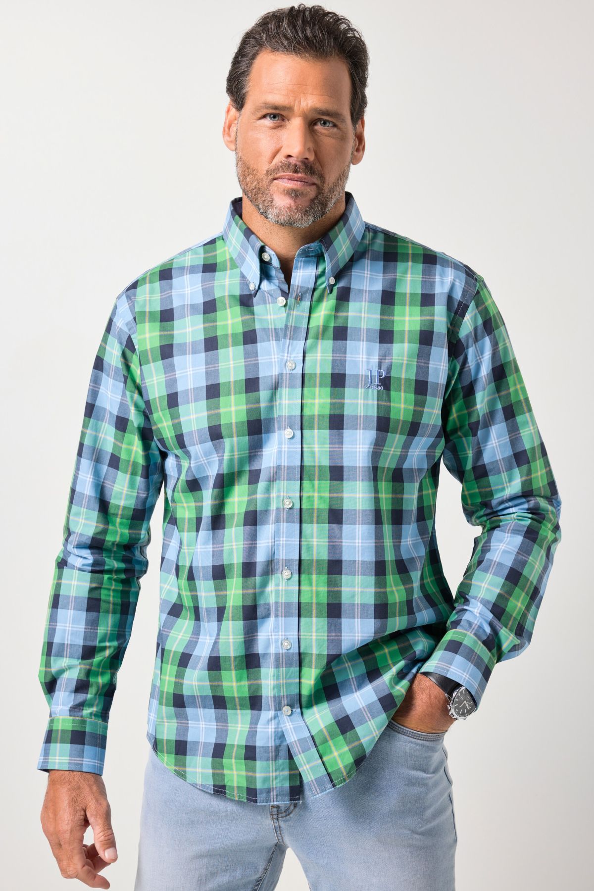 JP1880 long-sleeve button-down collar modern fit plaid shirt up to Size 8 XL