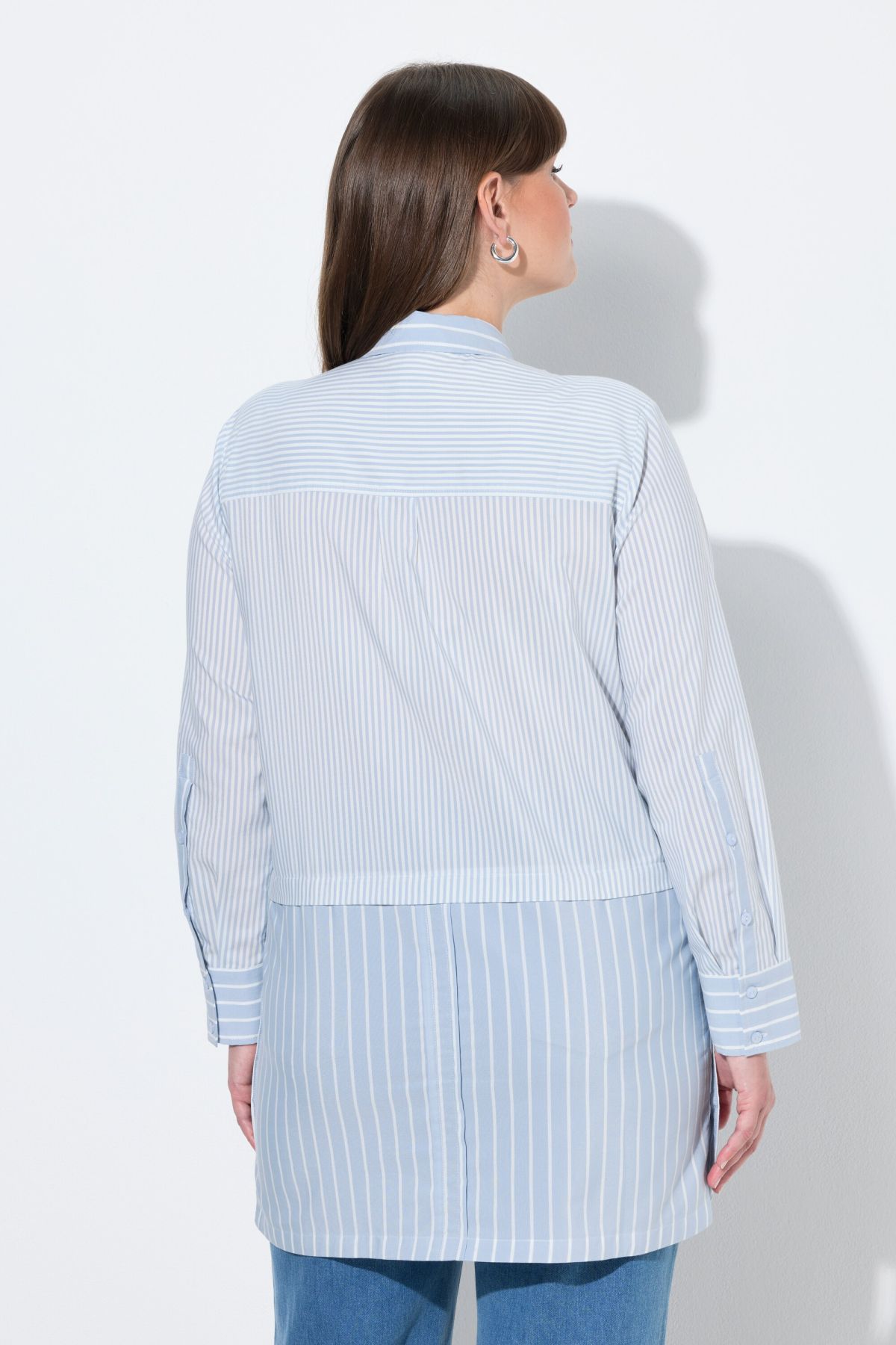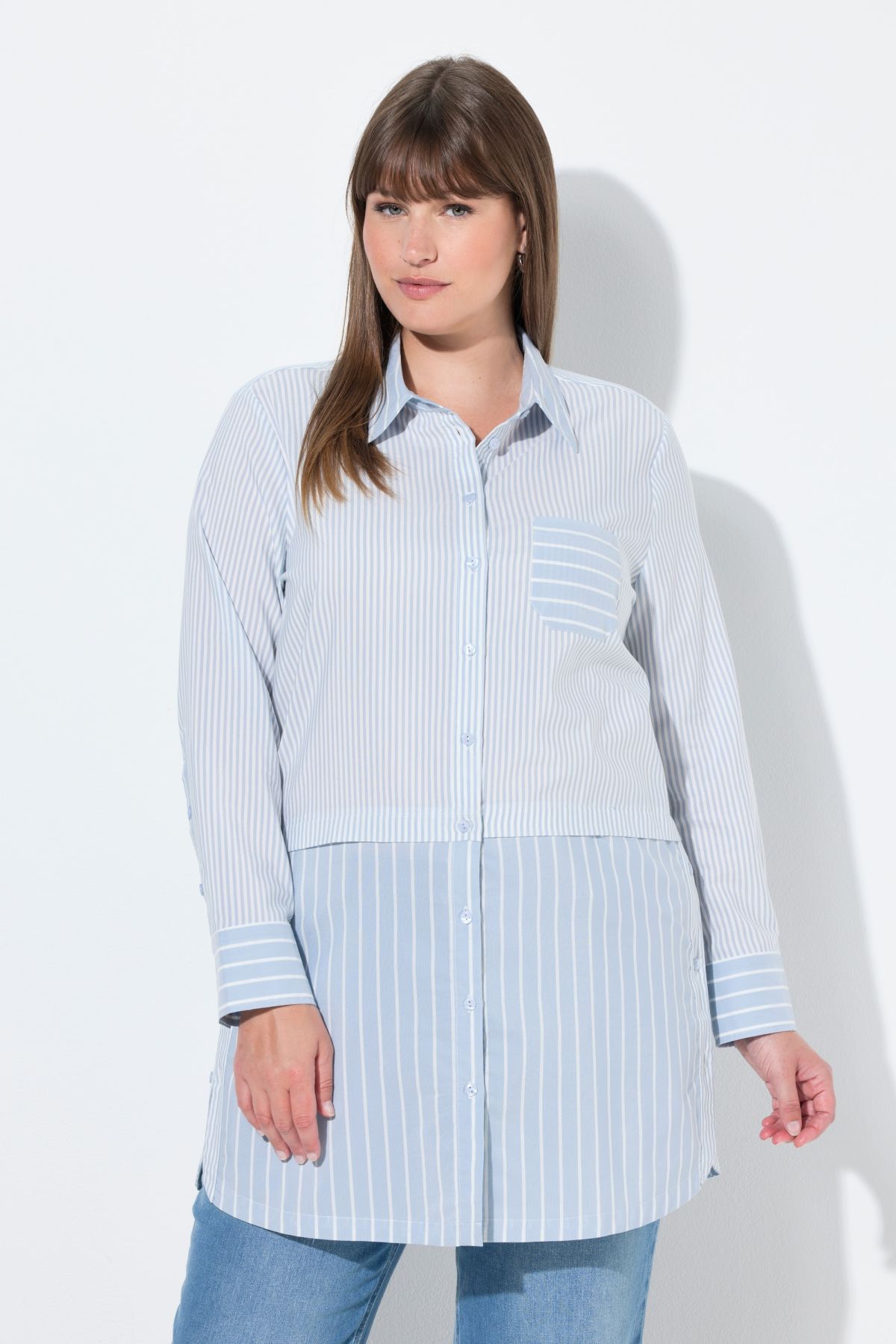 Eco Cotton Layered Look Mixed Stripe Tunic Blouse Elevate your officewear with this stripes-on-stripes design.
