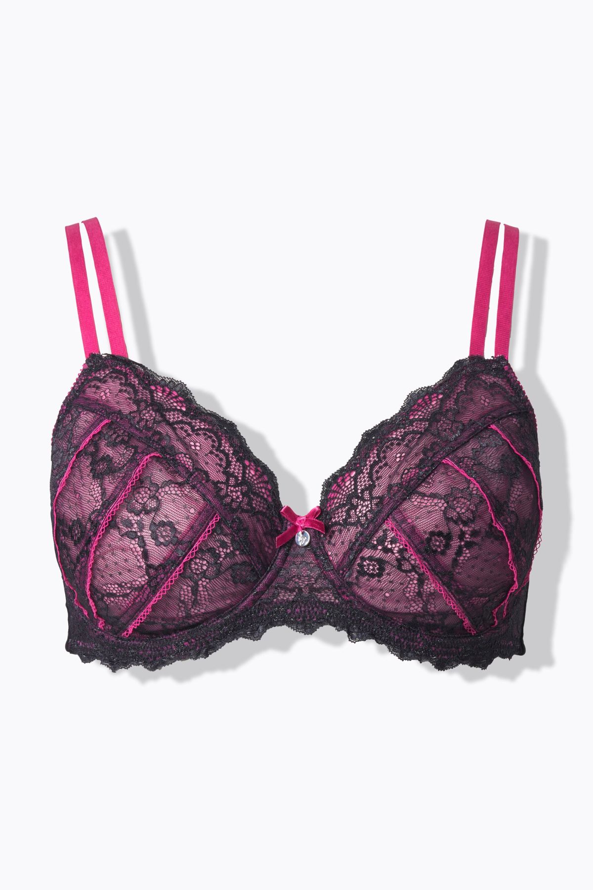 Елегантни дантелени чашки, декоративна цветна облицовка, разделени регулируеми презрамки, удобна, поддържаща кройка за оптимална опора и вълшебно деколте.
