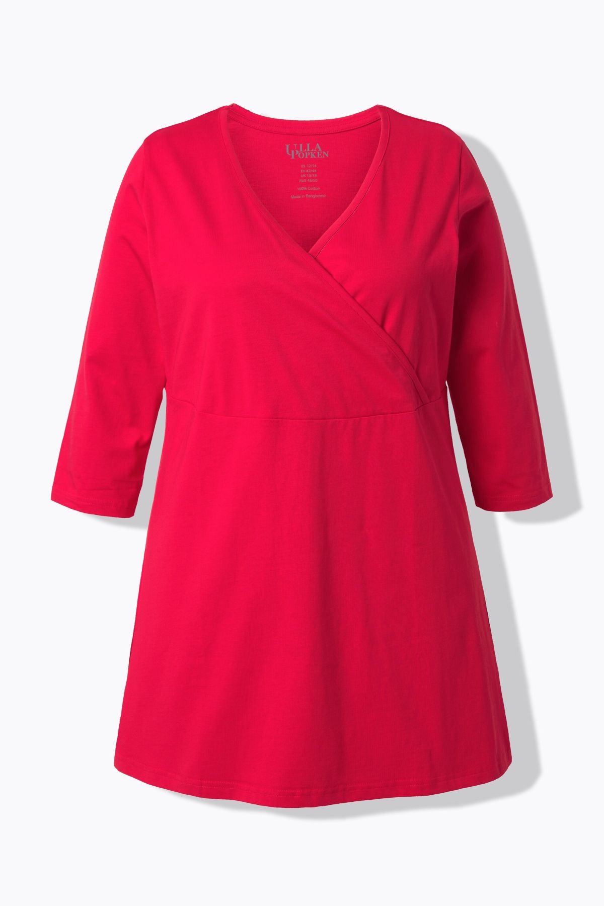 Фиксиран превръзка до талията, V-образно деколте, по-дълъг А-силует с удобно широк подгъв, 3/4 ръкави, чист памук, дължина, регулирана по размер, приблизително 81-85 см.