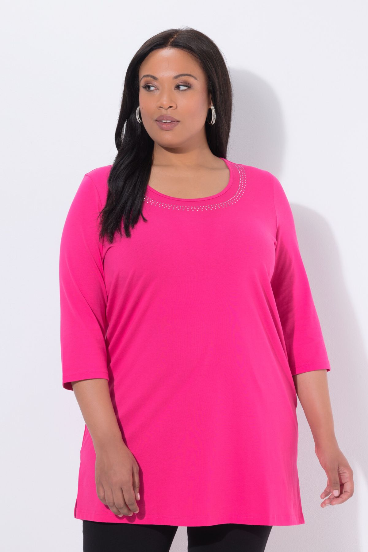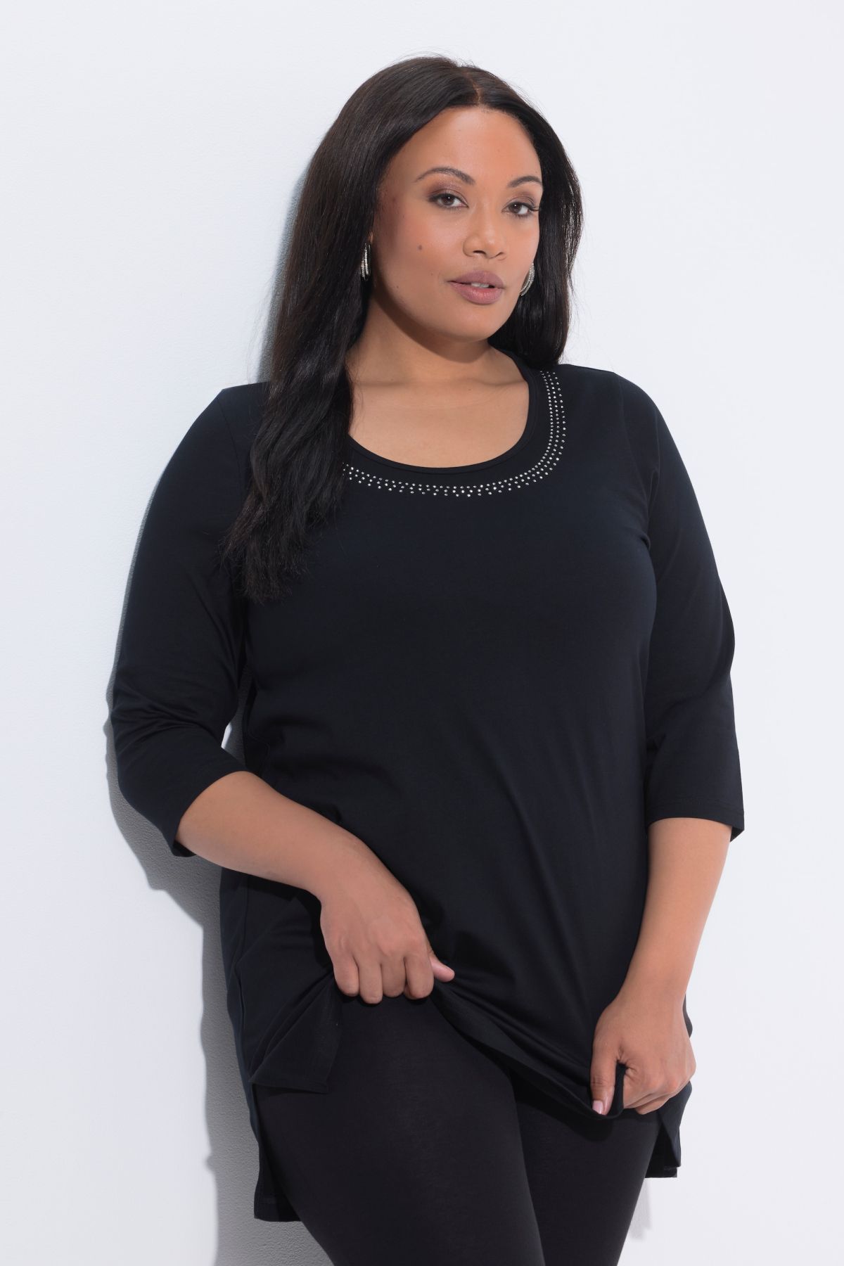 Metallic Studded Knit T With metallic rivets at the neckline for an edgy finish.