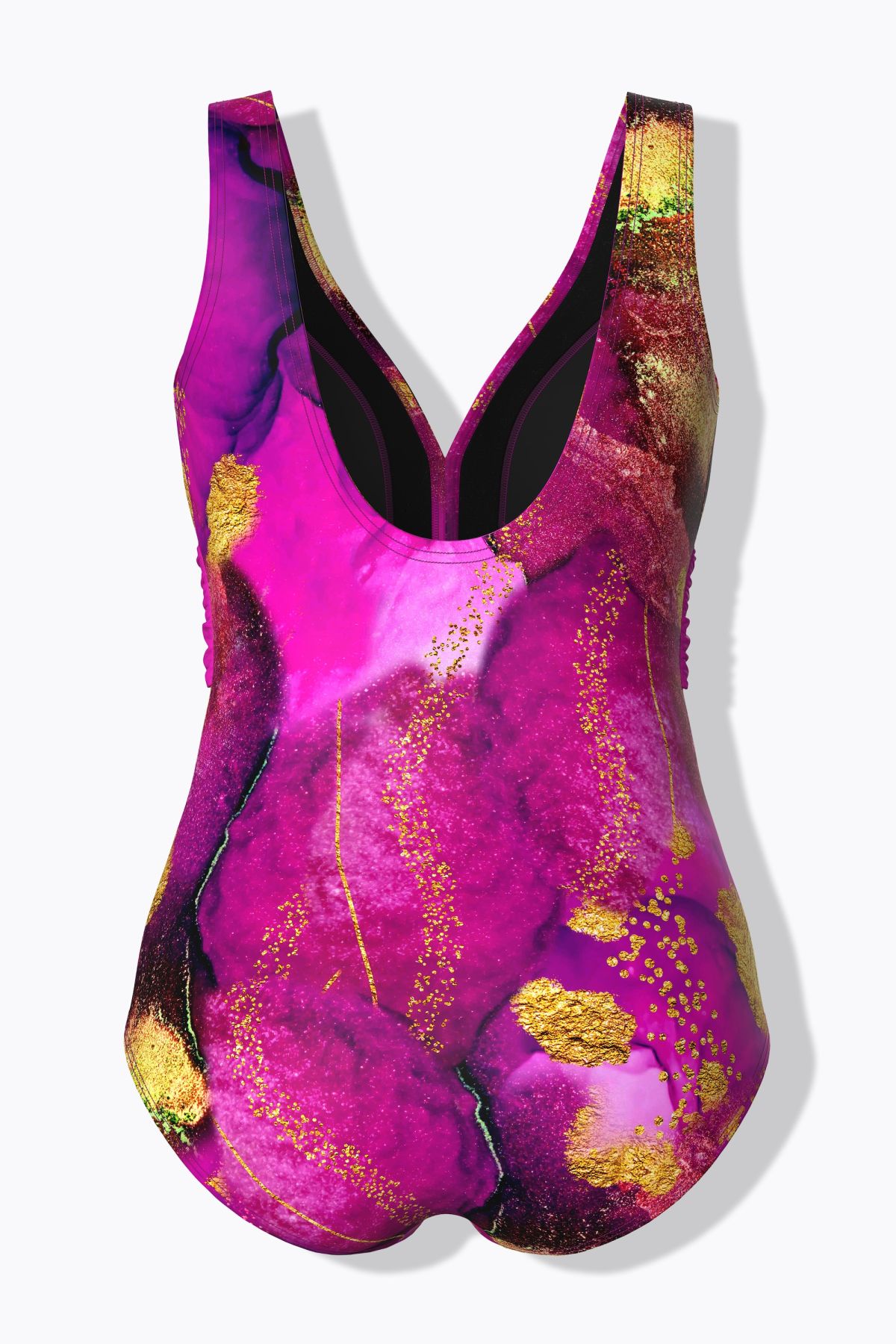 Pink Floral Swimsuit A decorative waistband with an ornamental buckle for a luxurious finish.